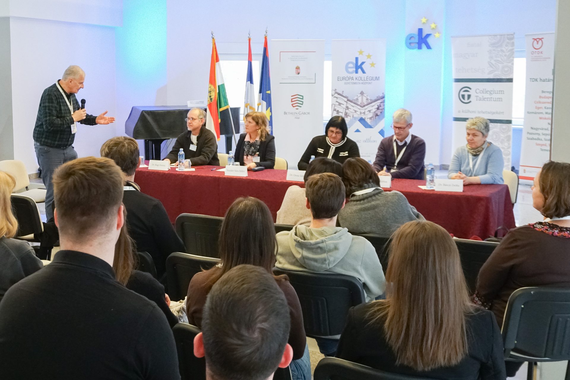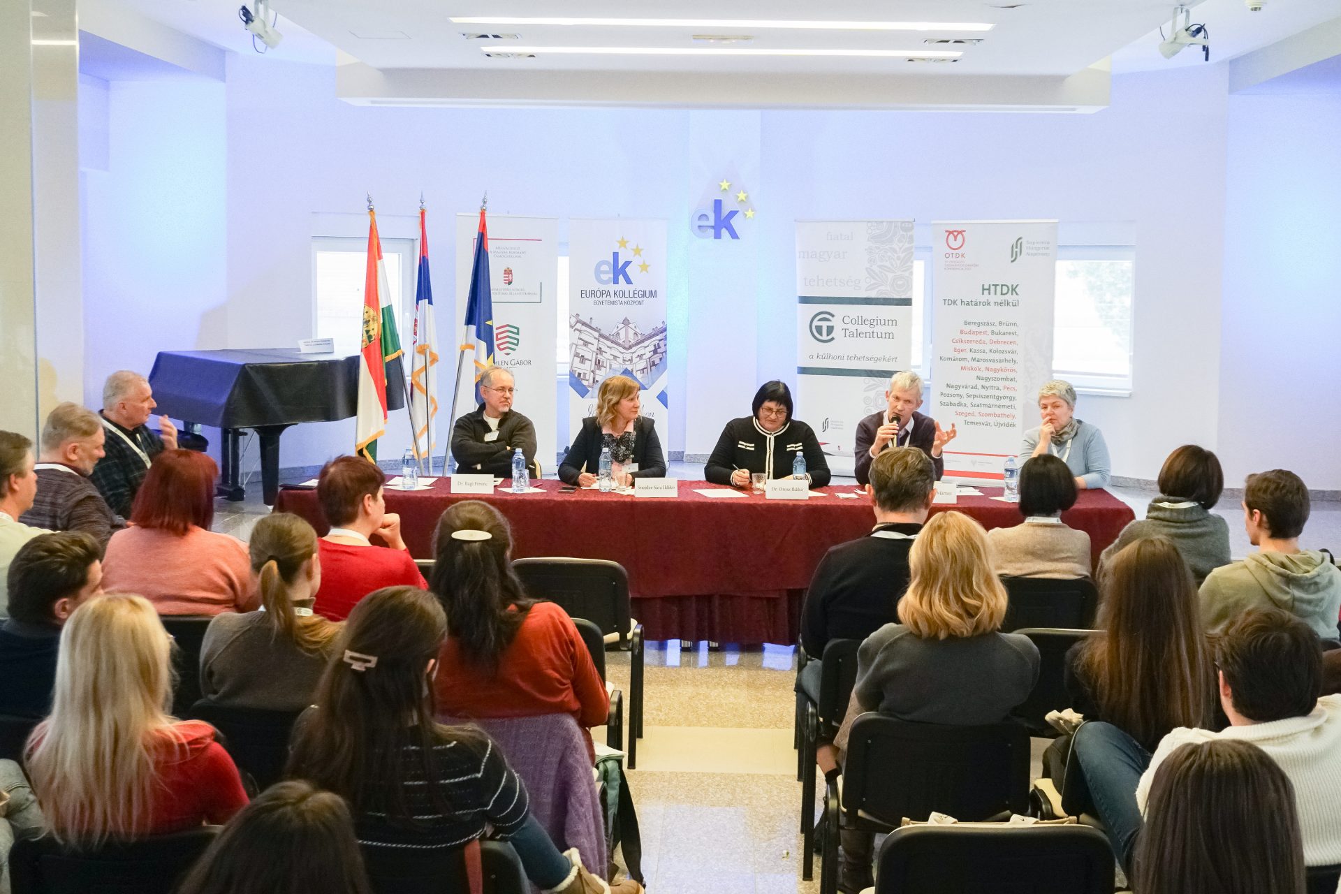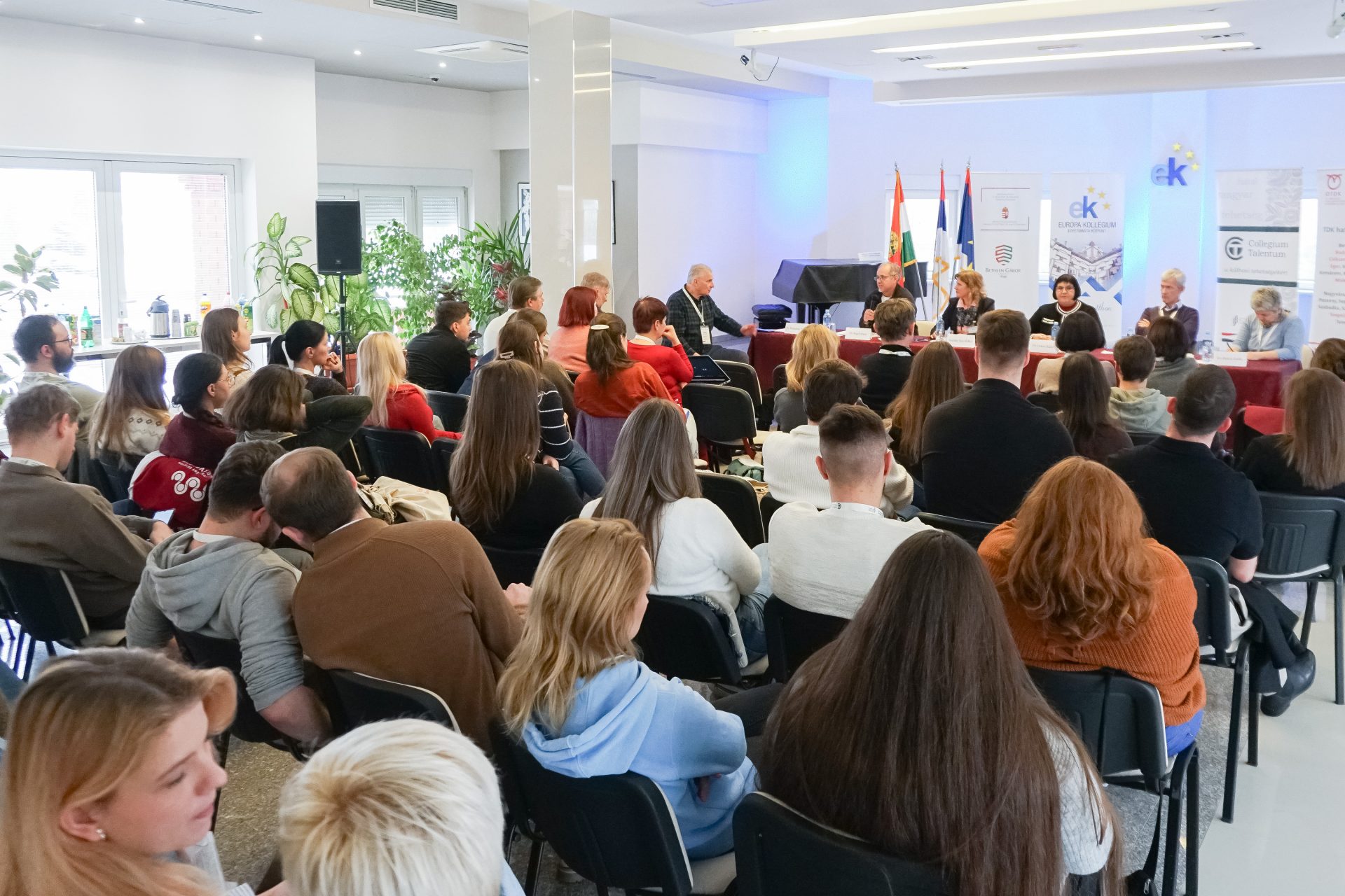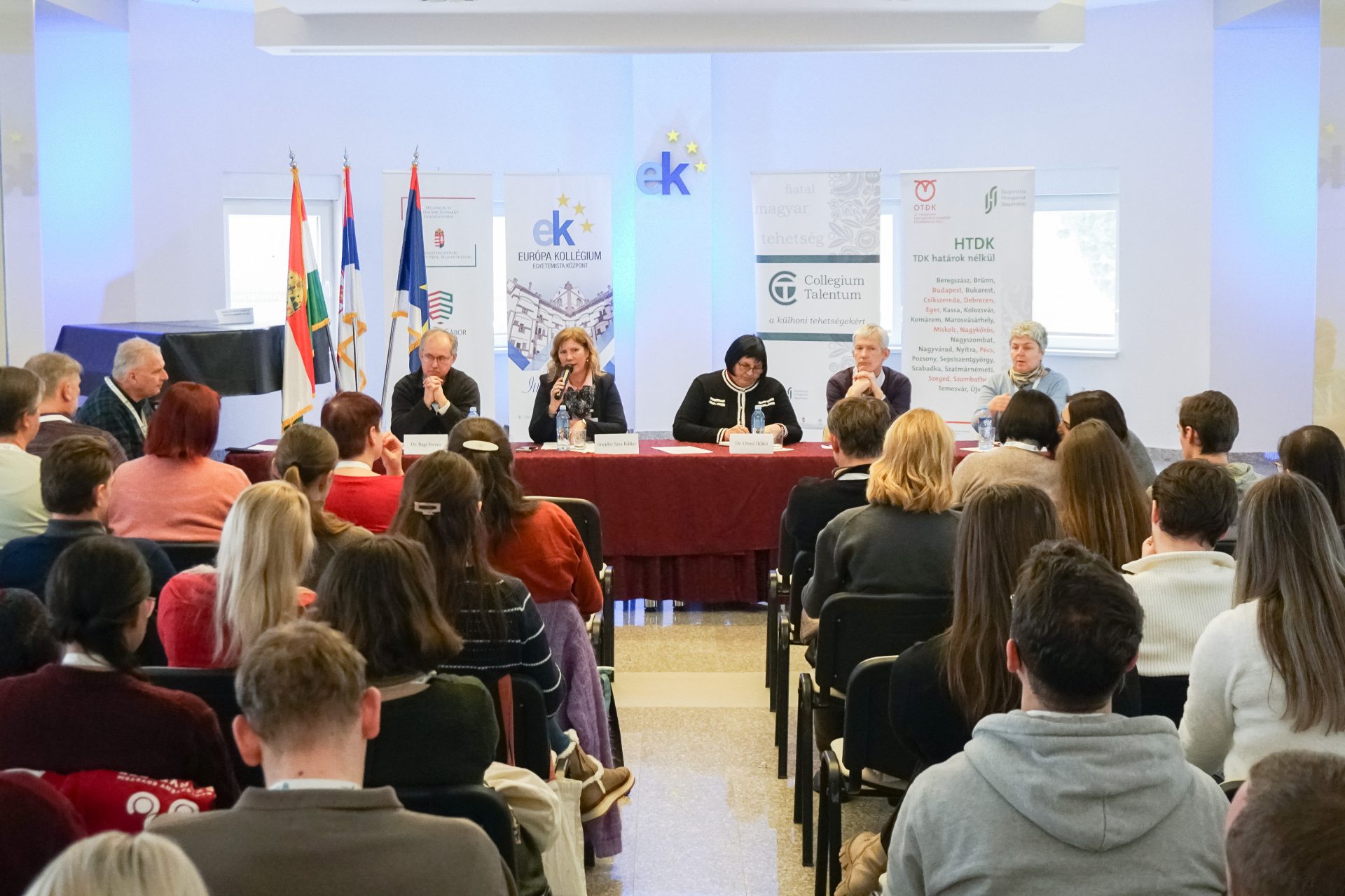 A panelbeszélgetést Dr. Weiszburg Tamás, a CT-program szakmai vezetője moderálta, felszólalt többek között Dr. Bagi Ferenc egyetemi tanár, tartományi felsőoktatási segédtitkár, az MNT Oktatási Bizottságának tagja, a kollégium műhelyvezető oktatója, Snejder-Sára Ildikó, az Európa Kollégium igazgatónője, Dr. Orosz Ildikó egyetemi docens, a II. Rákóczi Ferenc Kárpátaljai Magyar Egyetem elnöke, Dr. Tonk Márton egyetemi tanár, a CT-program szakmai vezetője és Dr. Bárczi Zsófia egyetemi docens, a CT-program Felvidéki szakmai bizottságának tagja. A vajdasági magyar felsőoktatási tapasztalatok megosztása mellett a hallgatóság a többi külhoni terület felsőoktatásával való párhuzamokat, érdekes hasonlóságokat és különbségeket is felfedezhette a beszélgetés során.