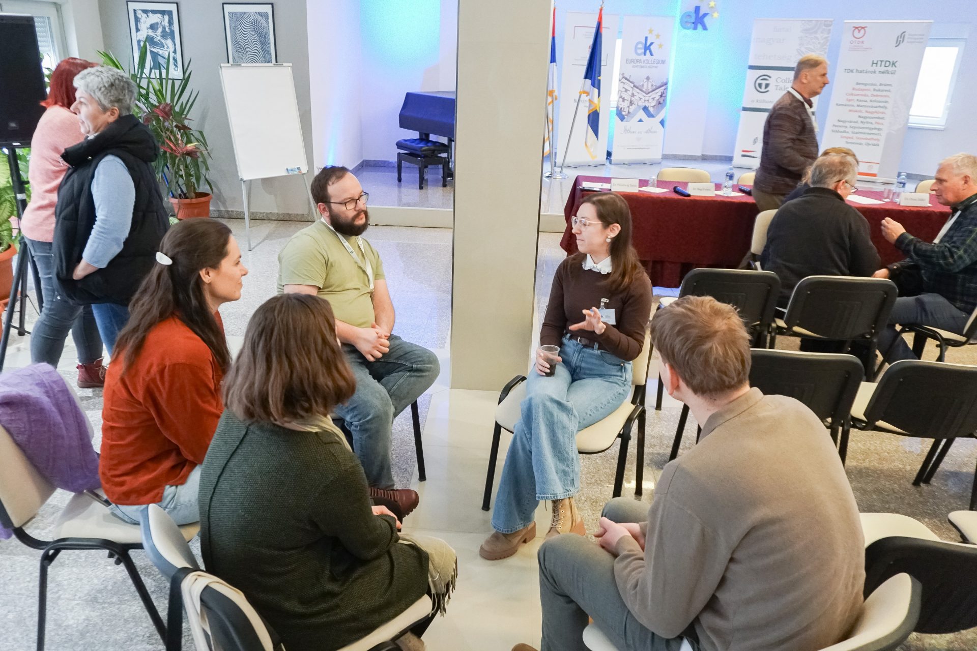 A panelbeszélgetésben fontos szerepet kaptak az Európa Kollégiumot képviselő kollégisták is, akik rövid bemutatkozás után kiscsoportos társalgásban vettek részt a CT-s ösztöndíjasokkal. A szakmai találkozót jó hangulatú, közös ebéd zárta.