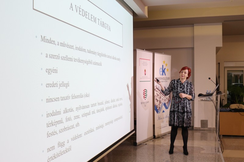 Vukašinović Éva ügyvédnő vezette be a kollégistáinkat e jogi témát érintő világba, élő példákkal illusztrálva az alkotók jogait, kötelezettségeit, és az ehhez kapcsolódó jogi fogalmakat. Megtudhattuk mit értünk szerzői jog alatt, mire és meddig terjed ki, illetve milyen következményekkel jár e jogok megsértése. Előadónk gazdag szakmai tapasztalatából merített ízelítőt a téma közérthetőbbé tételére.