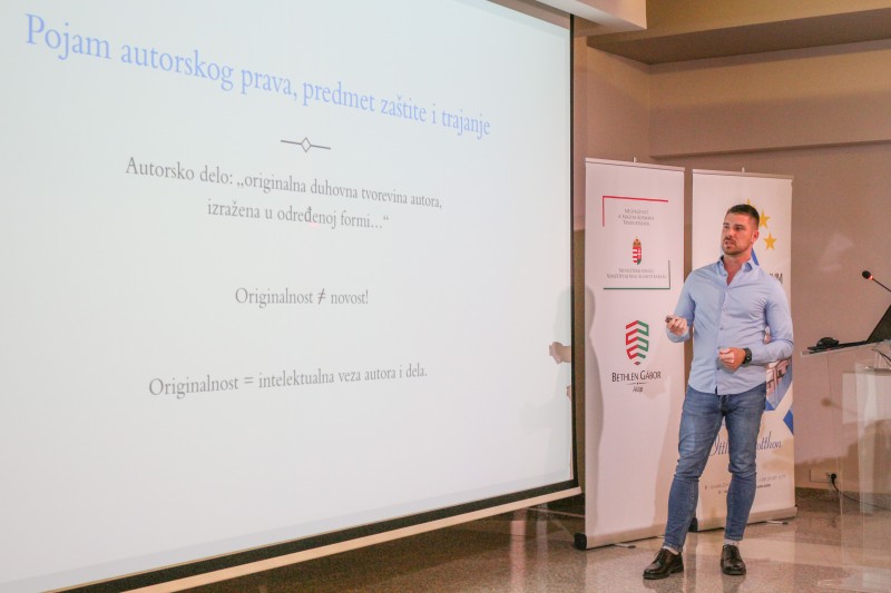 Kljajić Ljubomir szabadalmi jogász interaktív előadása elsősorban a kutatás, alkotás, szakdolgozatírás során betartandó szabadalmi jogi fogalmakra tért ki. A hallgatóság megismerhette mit jelent a plágium fogalma, milyen feltételekkel használható fel egy meglévő szellemi érték. A közönséget bevonva Ljubomir különböző tudomány- és művészeti területekről vett eseteken mutatta be, hogyan kell helyesen eljárni az alkotói jogok betartásával.