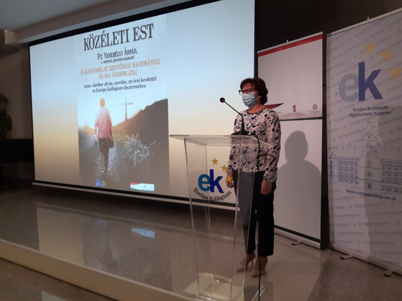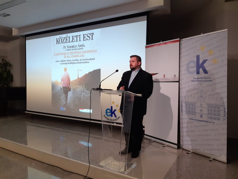 2020.október 28-án ft. Verebélyi Árpád, doroszlói plébános, c. prépost, kegyhelyigazgató A zarándoklat szentírási hagyományai és mai gyakorlatai címmel tartott előadást az Európa Kollégium dísztermében.