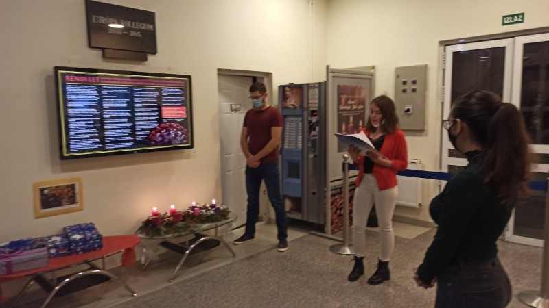 Bicók Lea kollégista, Aranyos Ervin, Advent harmadik gyertyája című versét szavalta el a gyertyagyújtást követően.