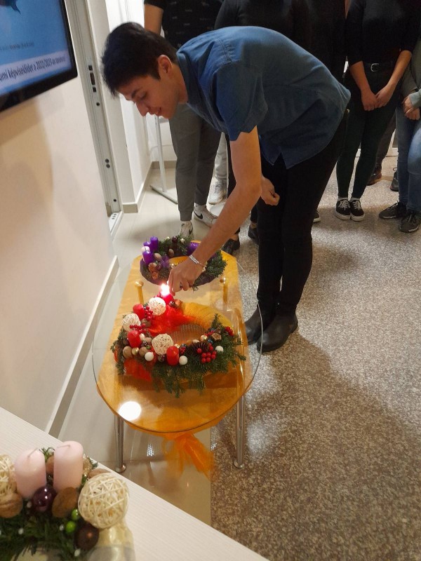 GalériaHírek Adventi várakozás 2022.11.28. Zsolt ádvent, gyertya Kezdetét vette az adventi időszak, az Európa Kollégiumban is sor került az első gyertya meggyújtására. Kollégistáink versekkel és imádságokkal tették még meghittebbé a várakozás időszakát. Rekeczki Angéla