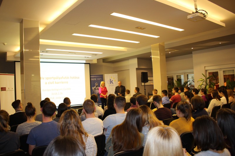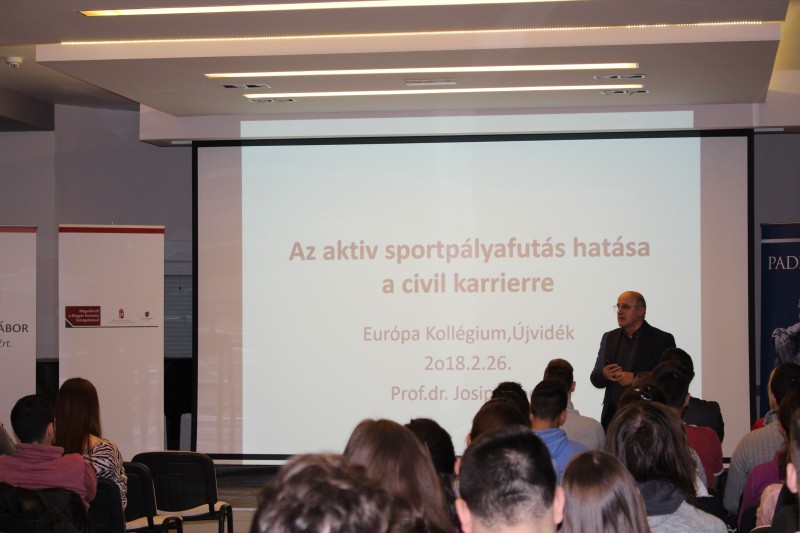 Dr. Lepeš Josip, a Magyar Tannyelvű Tanítóképző Kar tanára Az aktív sportpályafutás hatása a civil karrierre címmel tartott előadást közéleti est keretében az Európa Kollégium dísztermében.