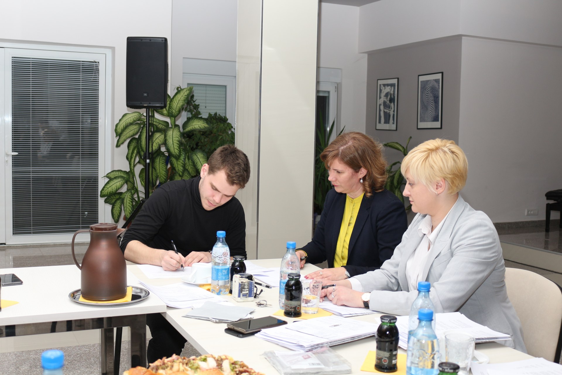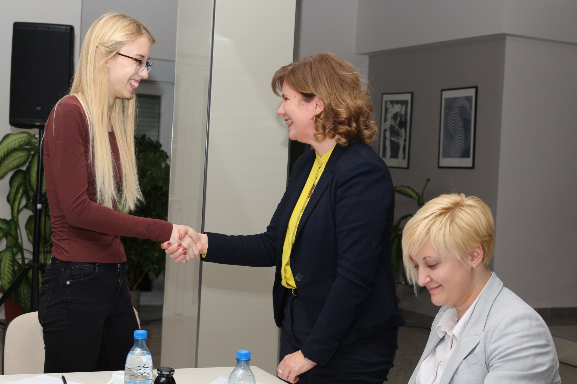 Snejder-Sára Ildikó igazgatónő köszöntötte a jelenlévőket, néhány szóban összefoglalva az ösztöndíjprogram tavalyi létrejöttének hátterét. Kiemelte, hogy a program az Országos Tudományos Diákköri Tanács, azon belül is dr. Weiszburg Tamás professzor úr kezdeményezésével indult. Hozzátette, idén 9 kollégista nyerte el az ösztöndíjat, akik több különféle tudományterületen folytatják tanulmányaikat, ezzel is biztosítva a projektum interdiszciplináris jellegét. A kerekasztal-beszélgetésen szó esett a szakdolgozatok formai követelményeiről, a tanév menetéhez kapcsolódó feladatokról, illetve a Moodle-rendszer használatáról. Sor került az ünnepélyes szerződés-aláírásra is. A program idei ösztöndíjasai: Bicók Lea, Erdei Szabolcs, Faragó Rita, Juszkán Petra, Madarász Marianna, Morvai-Rácz Richárd, Simon Oszkár, Szűcs Dóra, Tóth Szilárd.