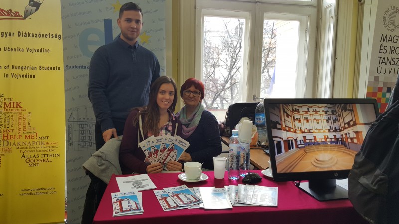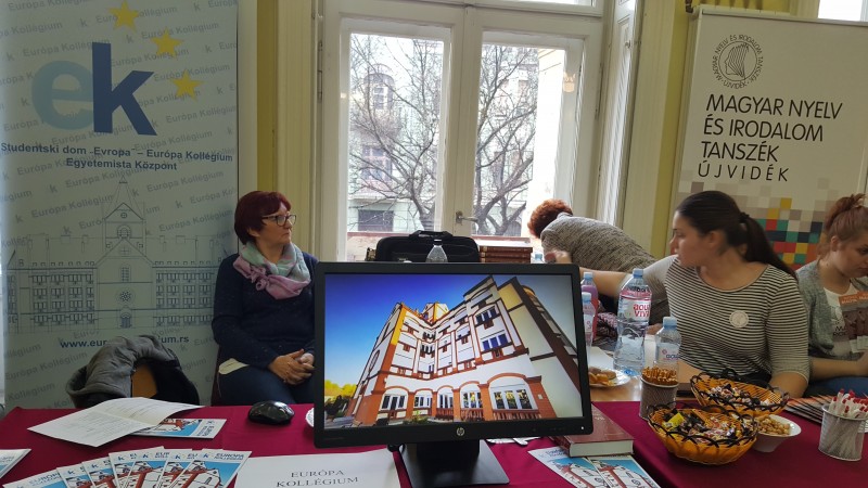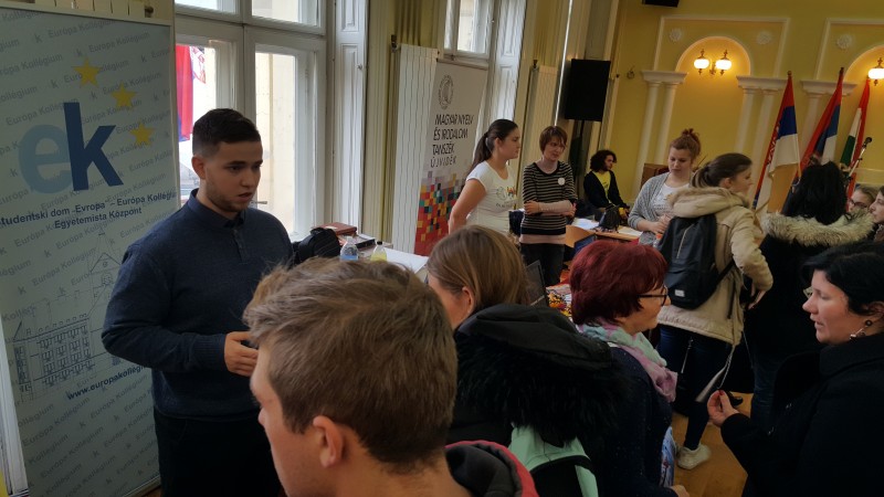 A kiállításon az Európa Kollégium is bemutatkozott, jelen voltak Snejder-Sára Ildikó igazgató, Horvát Mária nevelőtanár, Horváth József informatikai munkatárs, valamint Pletikoszity Árpád és Sisa Eleonóra kollégisták, akik a kollégiumi életről, az első rangú lakhatási lehetőségről és a szakkollégiumi tevékenységekről tájékoztatták az érdeklődő középiskolásokat. Különösen azokat a fiatalokat biztatták arra, hogy a kollégiumot válasszák, akik úgy érzik, hogy gyengébb szerb tudásuk miatt nyelvi akadályokba ütköznének.