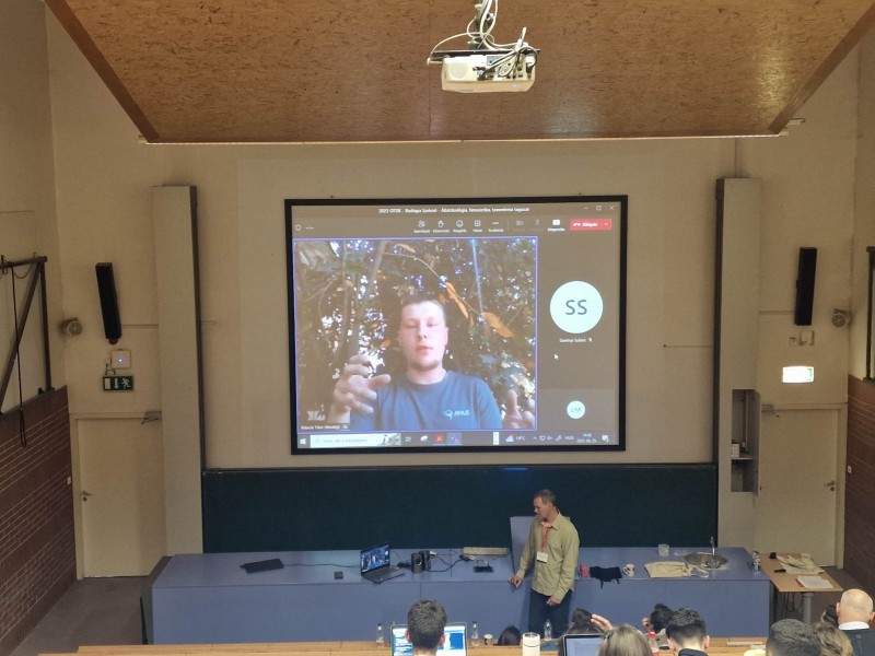 Gábor személyes jelenléttel adta elő munkáját a Bioinformatika és evolúcióbiológia tagozati ülésén, míg Tibor a konferencia ideje alatt zajló külföldi útjáról online csatlakozott az Állatökológia, faunisztika, taxonómia tagozathoz. A konferenciára látogató delegációhoz csatlakozott Szedlár Ágnes nevelőtanárnő és Szentmártoni László informatikai munkatárs is.