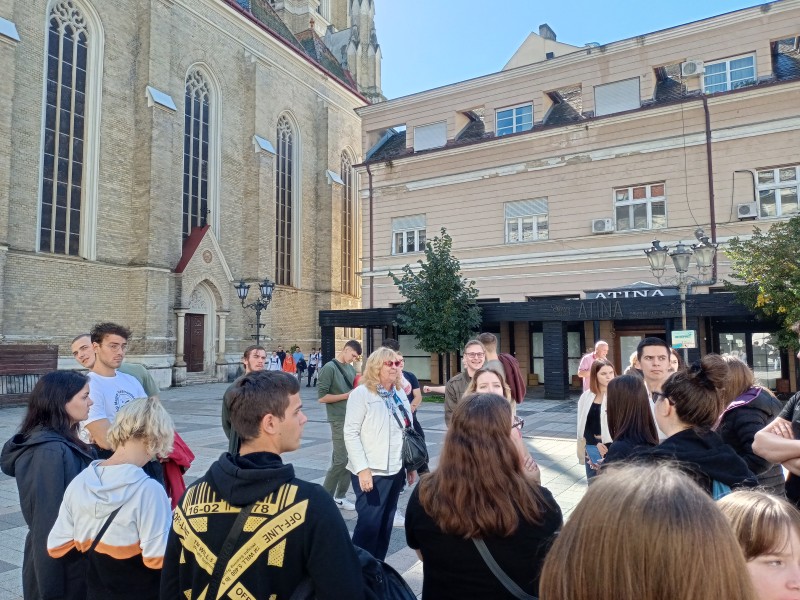 Elsőéves kollégistáink szeptember 30-án belvárosi sétán vettek részt idegenvezető kíséretével. Meglátogatták Újvidék városát, amely európai történelemmel, hagyományokkal és balkáni vendégszeretettel rendelkezik. Újvidék főterén a városháza és a katolikus nagytemplom épületeit tekintették meg. A főtéren elidőztek egy kicsit, majd meglátogatták a Szerb Nemzeti Színház épületét. Zmaj Jovina sétálóutcán a püspöki palota és a pravoszláv székesegyház történelméről halhattak pár érdekességet. A sétát a Zsinagóga és a báni palota megtekintésével zárták. A körsétának köszönhetően a kollégistáink megismerhették Újvidék központját és megérezhették a város hangulatát.