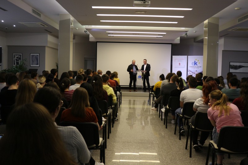 Kósa Lajos, magyarországi országgyűlési képviselő, a Fidesz alelnöke és az Országos Szövetkezeti Tanács elnöke volt az Európa Kollégium közéleti estjének a vendége. A fiatalok munkalehetőségei, foglalkoztatása – különös tekintettel a diákszövetkezetekre, mint hungarikumra címmel tartott előadást Majzik Nándornak, a MELÓ-DIÁK Universitas Szolgáltató Iskolaszövetkezet operatív vezetőjének és a Magyarországi Diákvállalkozások Országos Érdekképviseleti Szövetsége főtitkárának a társaságában.