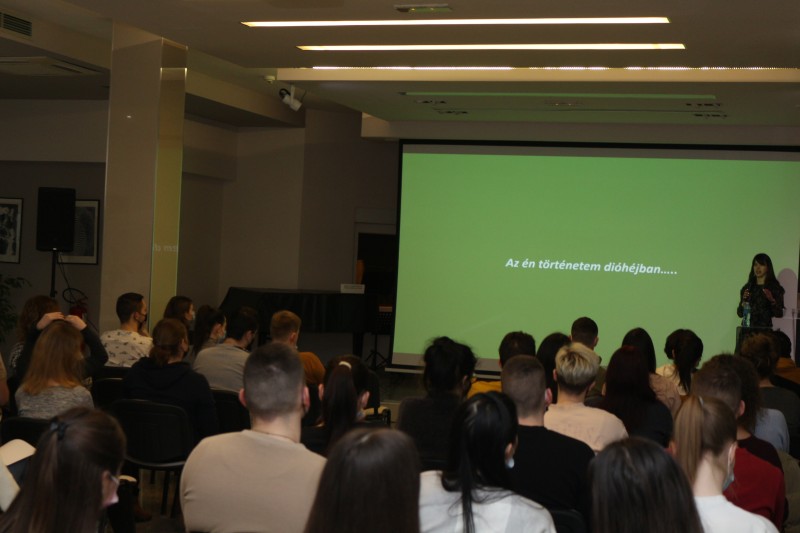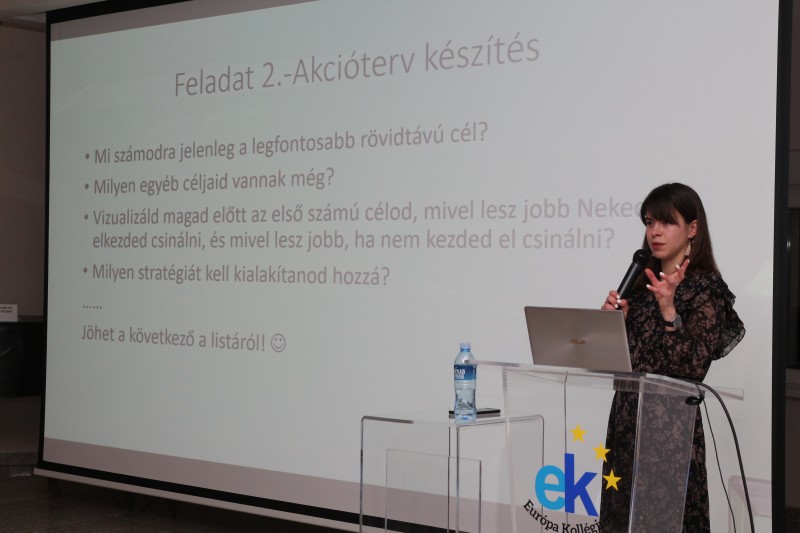 Dupák Evelin a hallgatóság bevonásával, gyakorlati példákkal szemléltette a stressz fogalmát, és annak a káros hatásait. Hasznos tanácsokat adott a felgyülemlő feszültség kezelésének módjáról is.