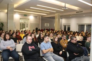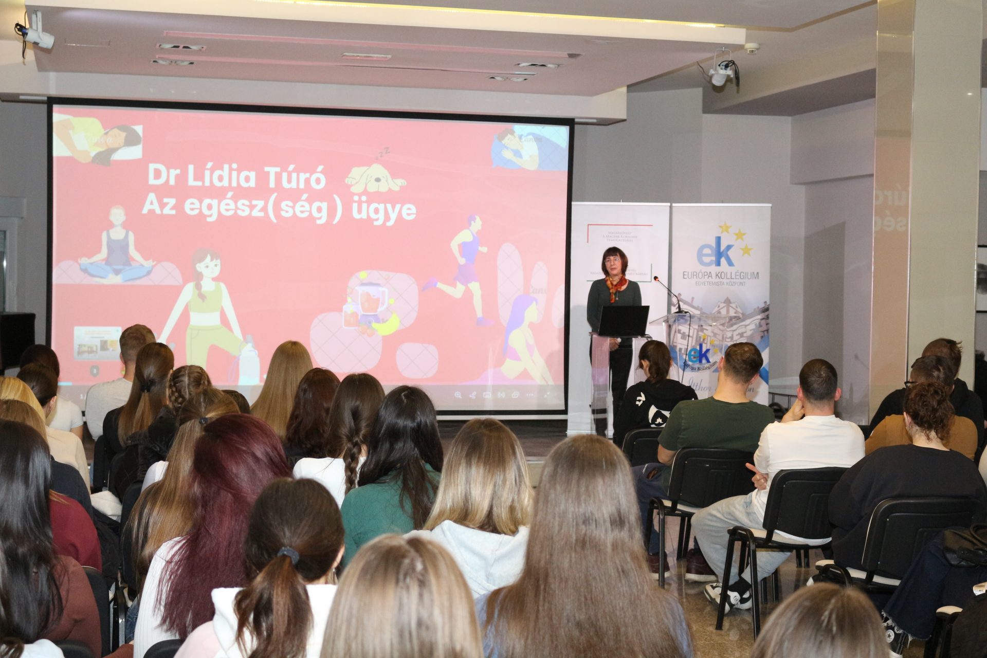 Előadásában felhívta a kollégisták figyelmét a legfontosabb tudnivalókra, amelyekkel megóvhatják az egészségüket. Külön kiemelte a stresszes időszakokat, amikor az alváshiány, az egészségtelen táplálkozás vagy a túlzott koffeinfogyasztás gyengítheti a szervezetüket. A közéleti est végén érdekességként a hallgatóságnak alkalma volt kipróbálni az alkohol és marihuána hatásait szimuláló szemüvegeket, amelyek a szédülés, lelassult reakciók, helytelen távolságérzékelés hatásait szemléltetik.