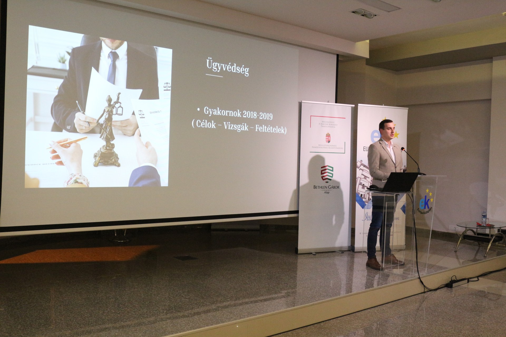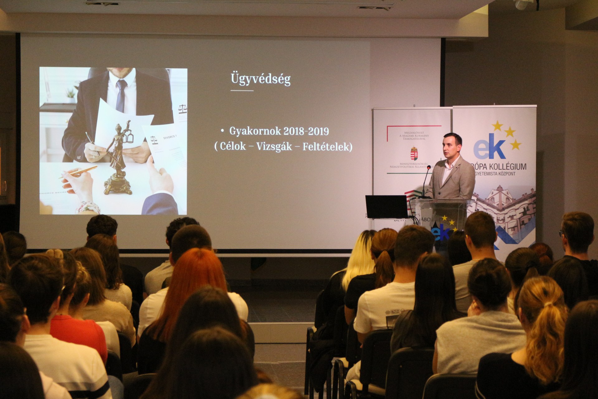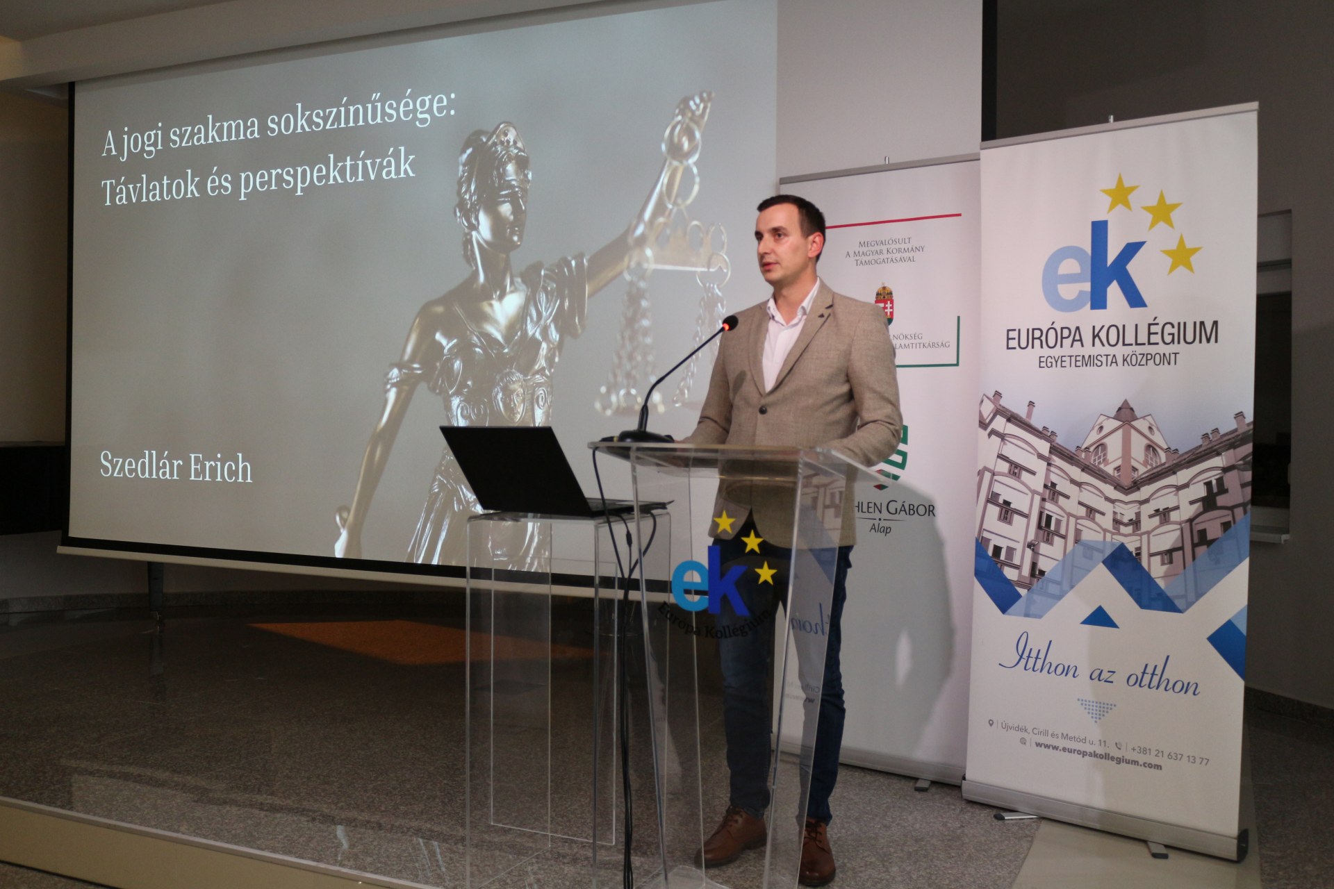 Szedlár Erich okleveles jogász, a tartományi képviselőház munkatársa, egykori kollégistánk A jogi szakma sokszínűsége – Távlatok és perspektívák címmel tartott előadást a kollégium dísztermében október 15-én.