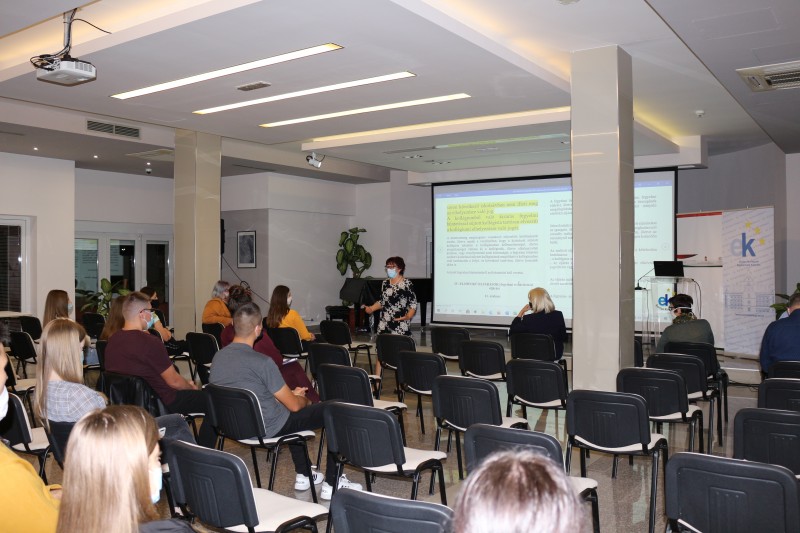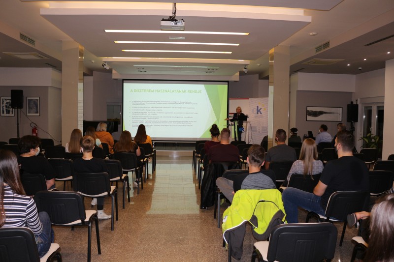 Fődi Éva, nevelőtanár az Európa Kollégium Egyetemista Központ lakóinak a házirendről, illetve a magatartási elvárásokról beszélt, valamint a fegyelmi és anyagi felelősségről szóló szabályzatot ismertette a jelenlévőkkel. A könnyebb és a súlyosabb kötelezettségszegéseket is részletezte.