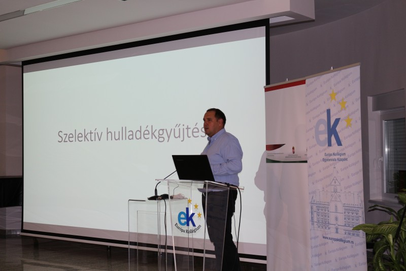 Bakos Róbert, nevelőtanár a szelektív hulladékgyűjtésről szóló előadását mutatta be. Elmondta a kollégistáknak, hogy intézményünkben szelektíven gyűjthetők a kommunális-, a csomagolási-, és a papírhulladékok, valamint a használt étkezési olajok, a kupakok és a használt elemek. Hangsúlyozta, hogy az utasítások, illetve a jelölések szerint történik a hulladékok szelekciója. A kollégistákat arra kérte, hogy tartsák be ezeket az utasításokat, hiszen ezzel hozzájárulnak a környezetmegőrzéshez.