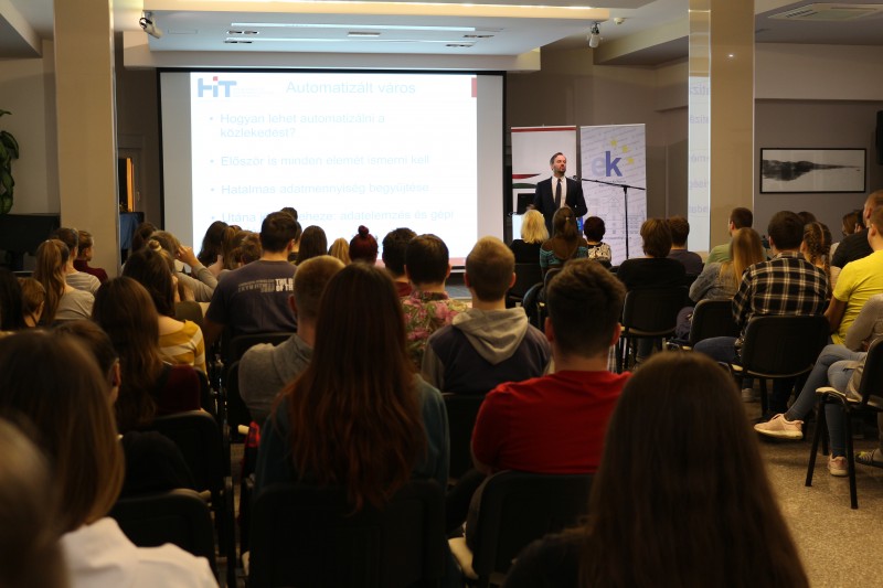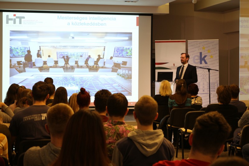 Dr. Simon Vilmos előadása során a kollégisták gyakorlati példákon keresztül tudhatták meg, hogy a több millió lakosú nagyvárosok életét miben tudják megkönnyíteni az okos rendszerek. Az egyetemi docens kutatócsoportja elsősorban a közlekedésre és a logisztikai központokra koncentrál.