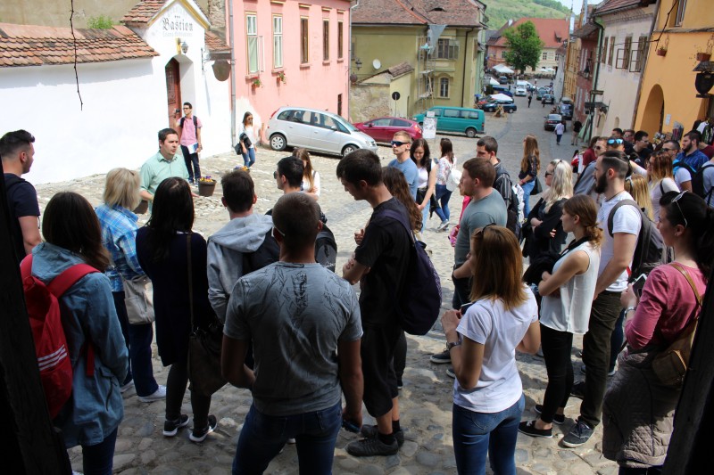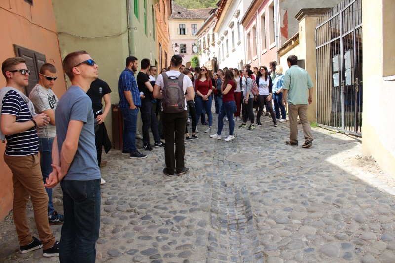 A következő megálló Nagyszeben volt, ahol egy hosszabb séta alkalmával megismerhettük a város nevezetesebb pontjait. A csapat egy kis része pedig utcazenélésre adta a fejét, hangjuk átjárta Nagyszeben központját, majd továbbgurultunk egészen Sellenberkig, ahol a Drakula szállóban pihentünk meg, és a vacsorát követően reggelig szórakoztattuk a vendéglátóinkat és egymást. A nótás kedvű társaság a nehézkes ébredés után néhány órával már Segesvár utcáit róhatta. A bájos épületek, a vár, a kilátás szépen lassan kezdte a síksághoz szokott társaság mentalitását átformálni. Tudat alatt, mélyen, csendben.