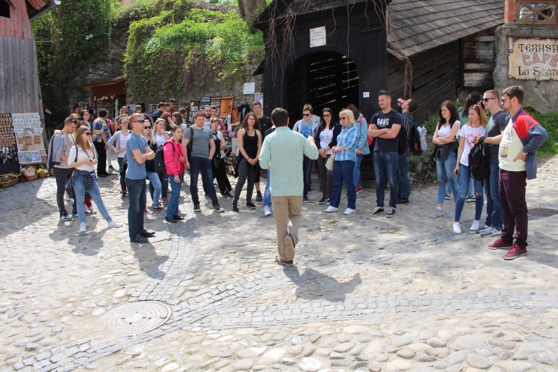 Május harmadikán hajnali négykor az Európa Kollégium lakói kirándulni indultak. A folyosók hangosak voltak a gördülő kofferek ropogásától, a szem alatti karikák és a fáradtság okozta ráncok pedig tompították mindezt. Az emeletes buszban kényelmesen elhelyezkedett társaság reggel hét órakor ért a zsombolyai határátkelőhöz. Akkor még csend és nyugalom hatotta át a járművet. Az első megállónk a „magas Déva vára” volt, ahol kinyújtóztathattunk elgémberedett végtagjainkat. A Billa áruház atmoszférája sokunkban mély nyomott hagyott, úgy is fogalmazhatnék, hogy visszatérő motívumként szerepelt az utunk során.