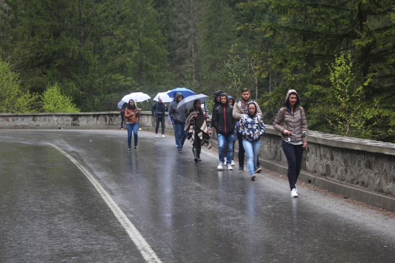 Azt hiszem mindannyian egyezünk abban, hogy az utunk legmegterhelőbb momentumai nem a folytonos utazás, a temérdek lépcsőfok, a hegyre fel, hegyről le kalandok voltak, hanem a reggeli ébredések, azonban harciasan küzdött mindenki, így időben fel is kerekedhettünk a harmadik napon is – most Gyergyószentmiklós felé. Megálltunk a Pongrác tetőn, az elénk táruló látvány beleégett a tudatunkba, a több száz elkészített fotó utána következett a Békás szoroson át vezető séta. Számomra az egyik legszebb élményt jelentette. A három kilométeres séta közben el is áztunk, a nap is sütött ránk, de senkit sem foglalkoztatott az időjárás zordsága. Ekkor már magunk mögött hagytuk lélekben Vajdaságot, a hétköznapokat, a problémákat és csak haladtunk a hegyi patak mellett, felénk tornyosultak a hegyek, a növényzet kápráztató volt, a levegőből pedig ,,dunsztolnunk” kellett volna az ínségesebb időkre. Hihetetlen egy varázslat volt.