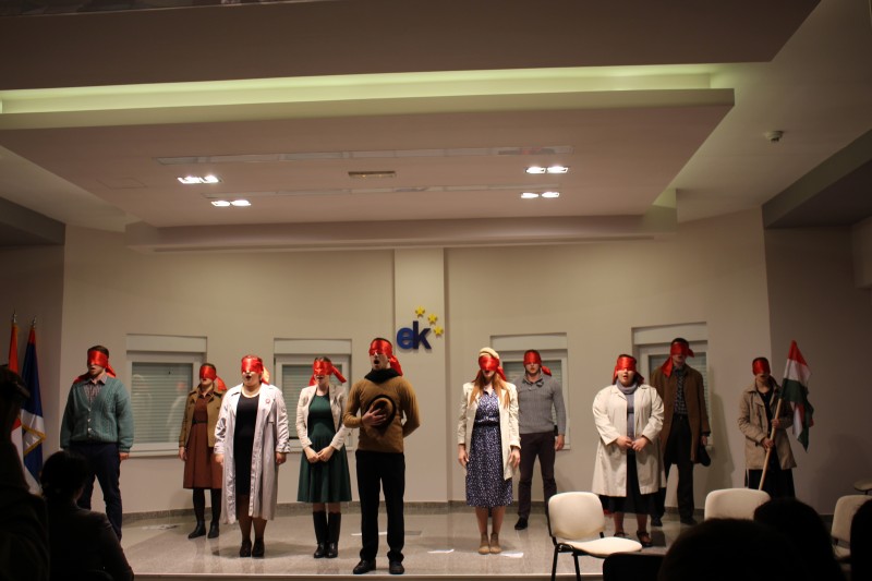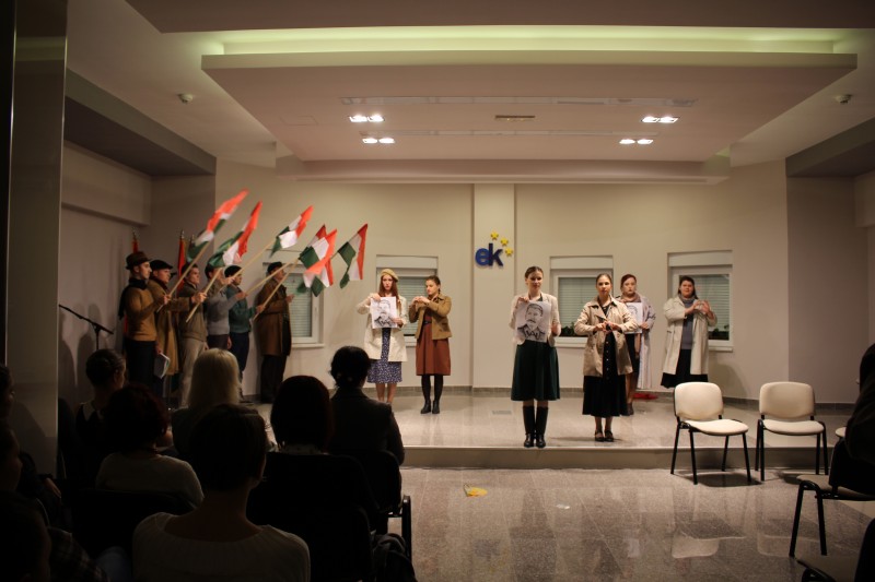 „Azokra a hősökre emlékezünk, akik kivívták a szabadságot, és azokra, akik az életüket adták érte”. – ezekkel a szavakkal köszöntötte Snejder-Sára Ildikó megbízott igazgató az egybegyűlteket és megköszönte az előadás létrejöttét elősegítők áldozatos munkáját.