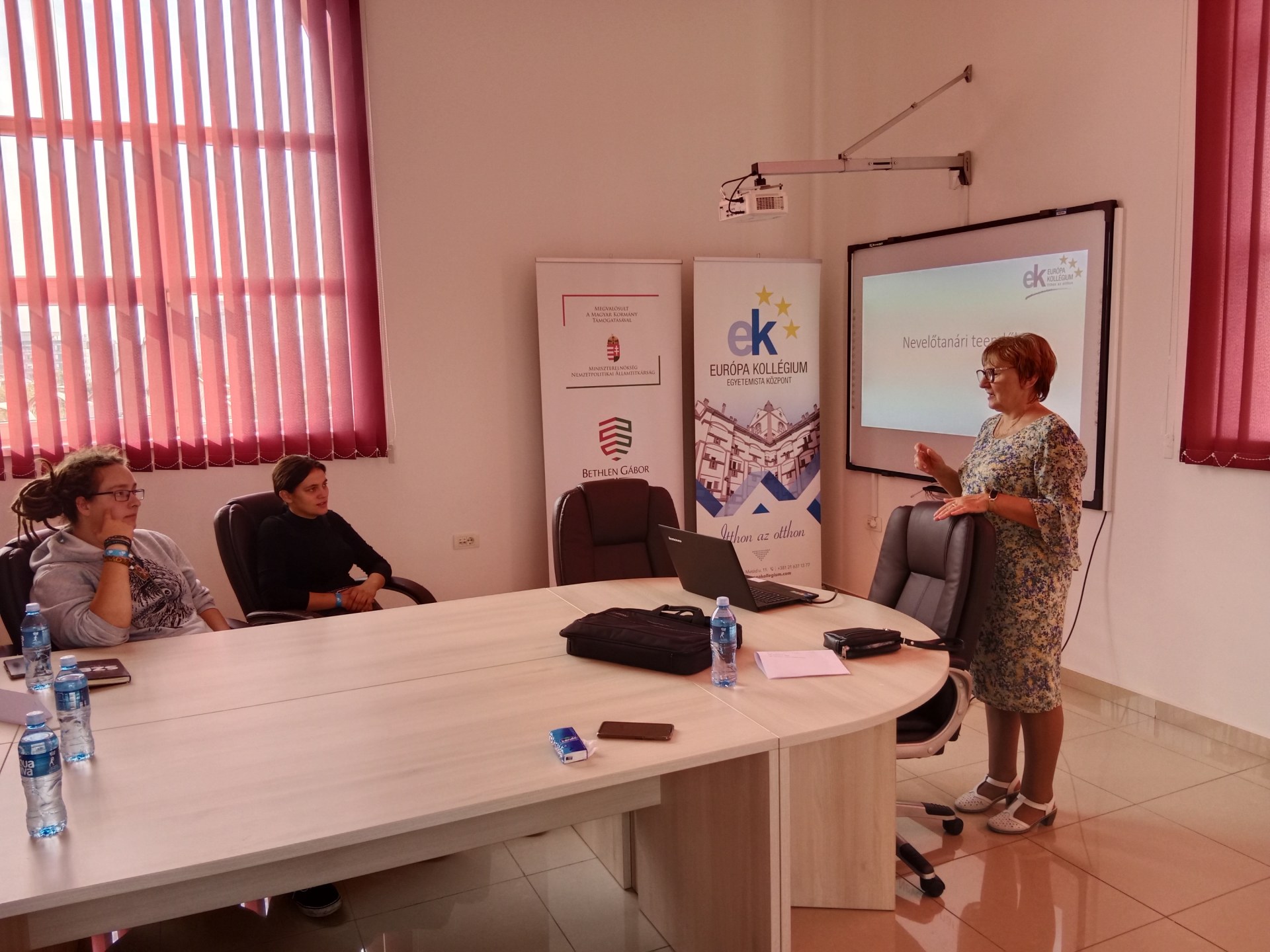 Kollégiumunk már az MTTK nevelőtanári szakos hallgatóinak harmadik generációját látta vendégül szeptember végén. Az elsőéves hallgatók egyhetes gyakorlati oktatásukat töltötték az Európa Kollégiumban. A hallgatók betekintést nyertek a kollégium történetébe, megismerték a helyiségeit, a felszereltségét és a házirendjét. Bemutatót hallgattak az EKHÉK munkájáról és eddigi eredményeiről. Részt vettek az elsősök fogadására készülő program főpróbáján, valamint a nevelőtanárok által készített eligazító előadás próbáján is. A beszélgetések során komoly érdeklődést mutattak a kollégiumi nevelőtanári munka iránt, és szép élményekkel tértek haza.