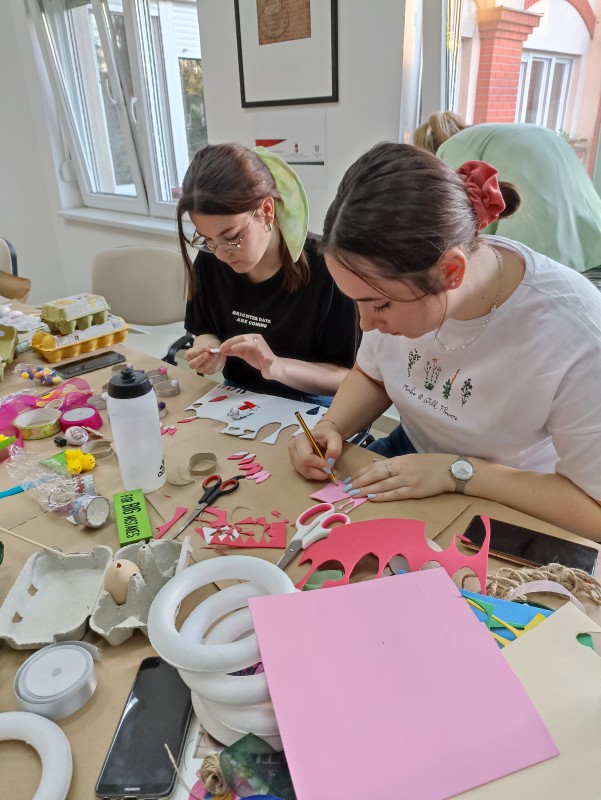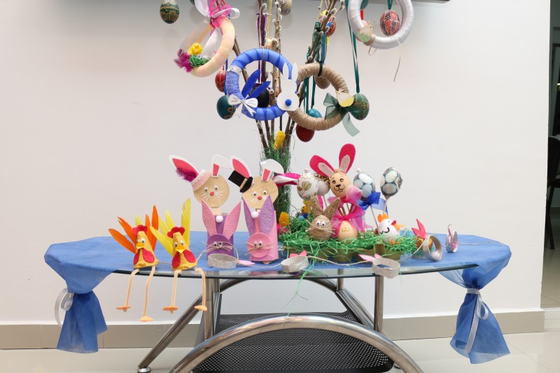 A húsvétra hangolódó kézműves foglalkozás jegyében húsvéti dekorációkat készítettünk. A repertoárunk igen bő volt, a koszorúktól, a festett tojásokon át az ablakdíszekig minden megtalálható volt.