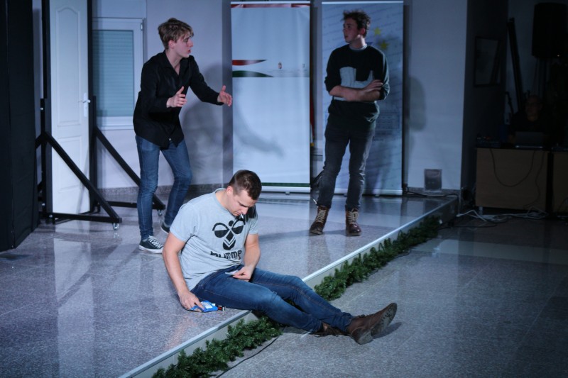 A veresegyházi Logo Színtársulat által bemutatott jelenetek között Varga Péter, drogprevenciós szakember beszélt a droghasználatról, és a fiatalokat közvetlenül érintő veszélyforrásokról. A jelenetek értelmezésébe bevonta az előadást nagy érdeklődéssel néző kollégistákat is. Olyan kérdésekre keresték – és találták meg – közösen a választ, mint például, hogy milyen a következménye lehet az akár csak egyszeri drogfogyasztásnak, miért szoknak rá a fiatalok a drogra, és mit tehetünk, ha a környezetünkben valaki függővé vált.