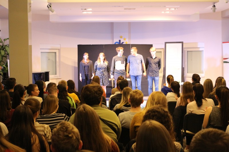 Te döntesz! a címe annak az előadásnak, amelyet december 4-én láthattak a kollégisták, és interaktív narrációval, színházi elemekkel, de valós történetek alapján előadott jelenetekkel vonta be őket a függőség világába.