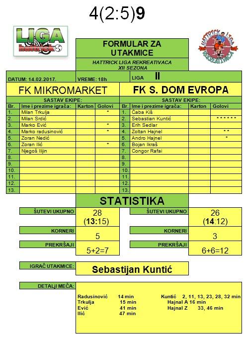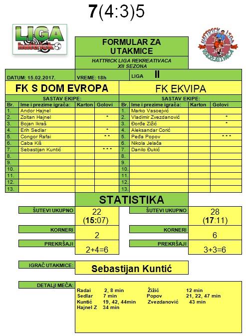 Az Európa Kollégium focicsapata ezen a héten két mérkőzést játszott az újvidéki Hattrick ligában. Az FK Mikromarket csapatát győzték le 9-4 -re, majd pedig az FK Ekvipa focicsapatát 7-5 -re. A kollégium focicsapata továbbra is az első helyen áll a 27 csapatot felvonultató kispályás labdarugótornán.