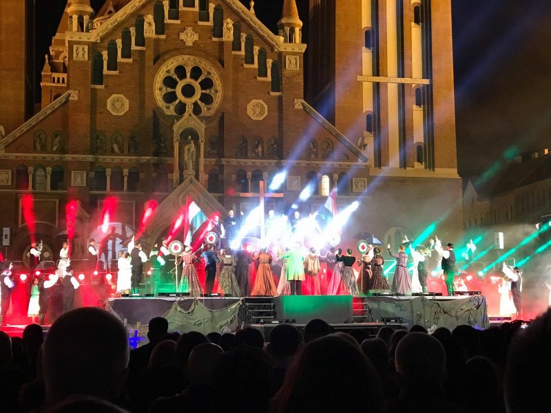 Elsőéves kollégisták tekintették meg az Itt élned, halnod kell történelmi rockmusicalt a Dóm téren, Szegeden.