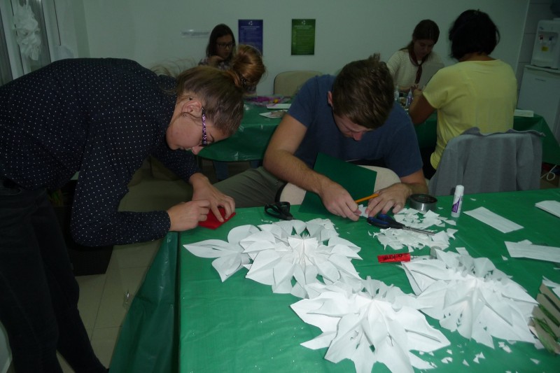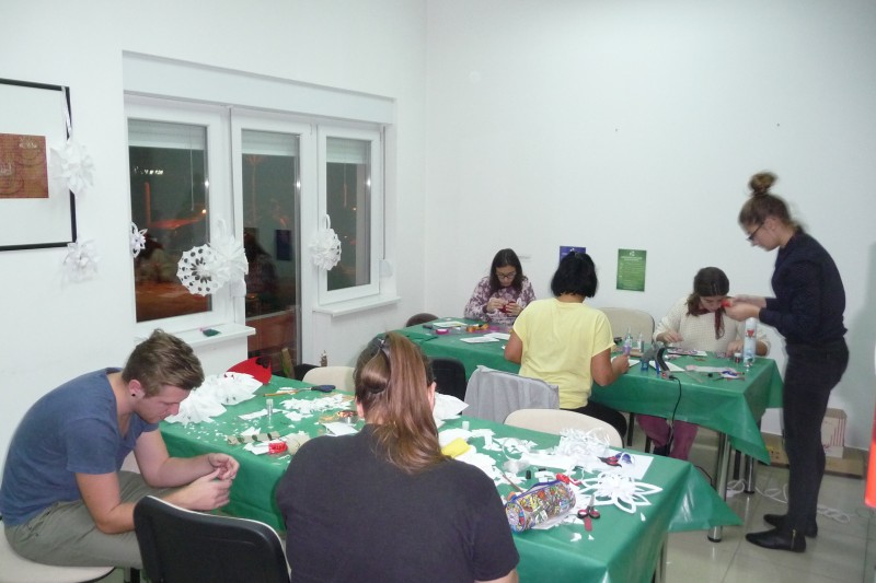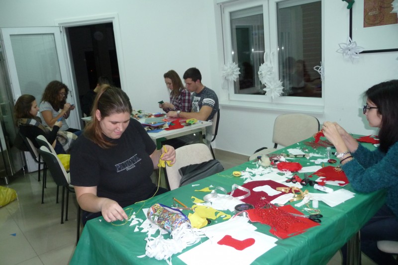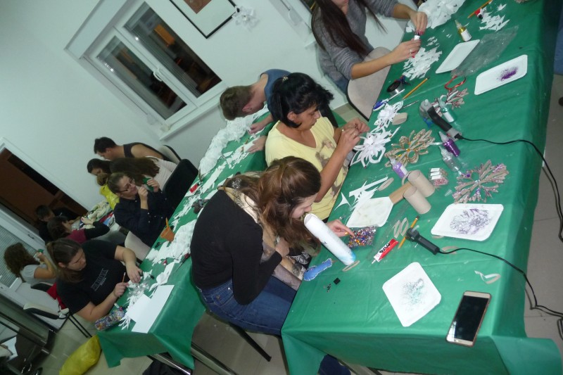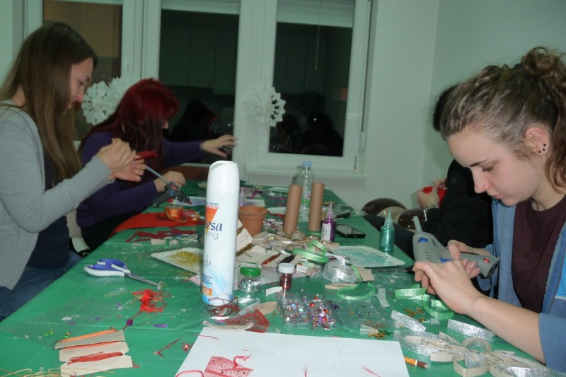 Kézműves foglalkozás keretében az idén is készítettünk karácsonyi díszeket és ajándékokat a kollégiumban. A díszeket elsősorban a kollégium előcsarnokában és dísztermében felállított karácsonyfák díszítésére szántuk, de mindenki készíthetett magának is díszeket.