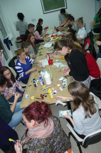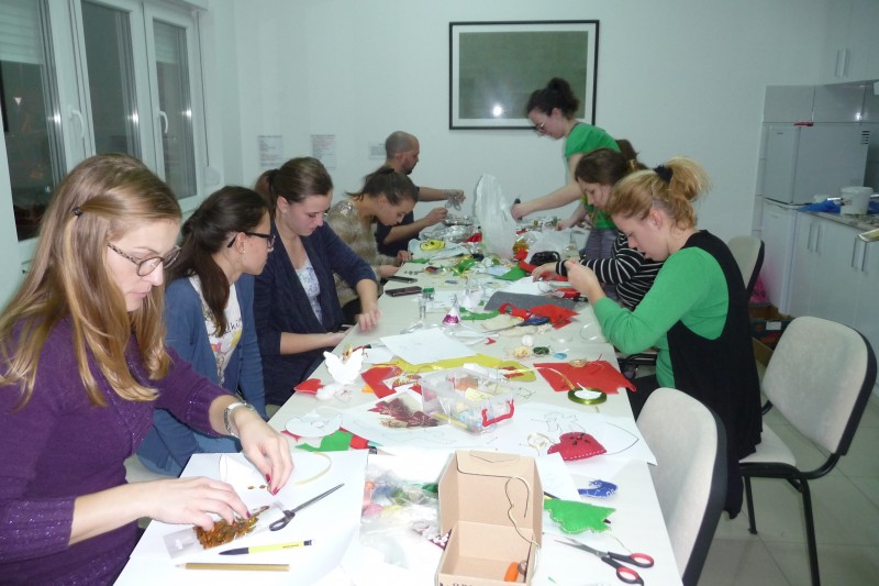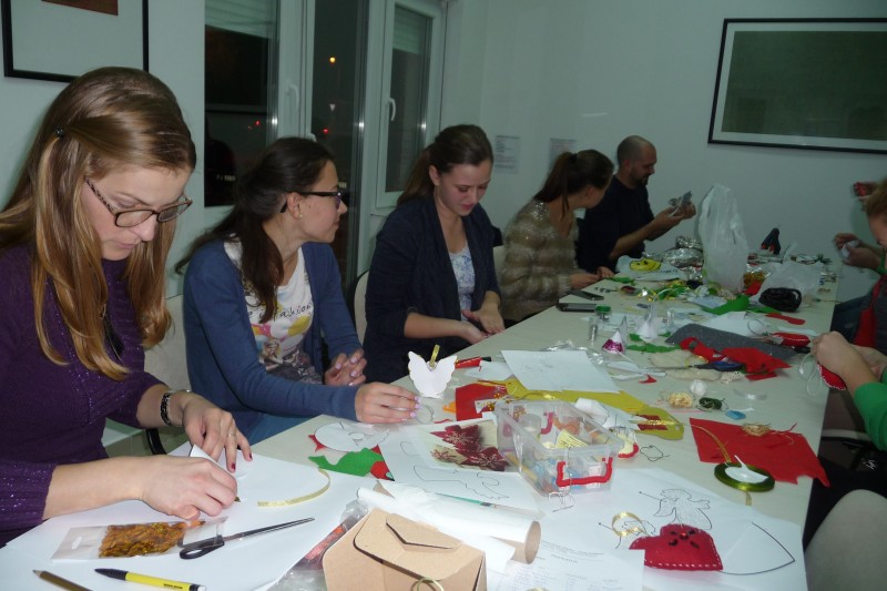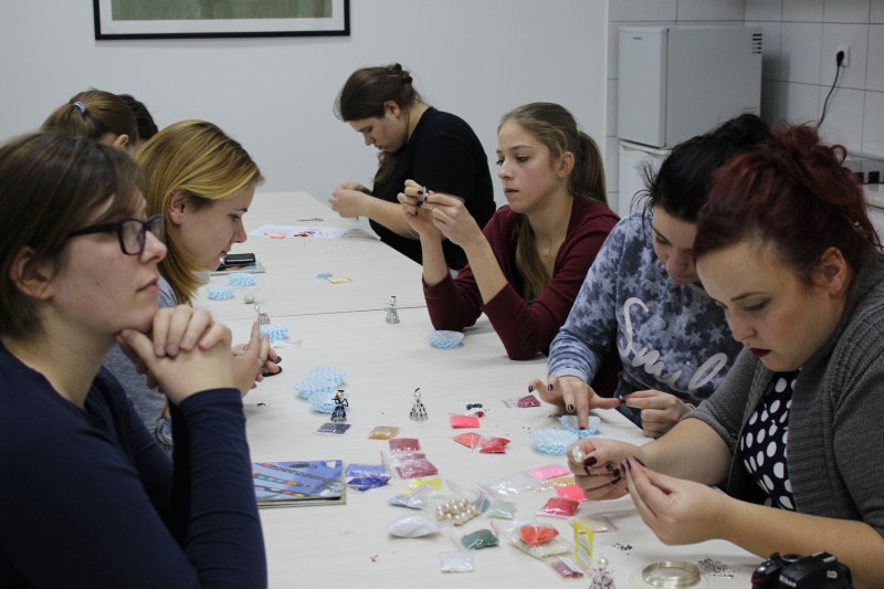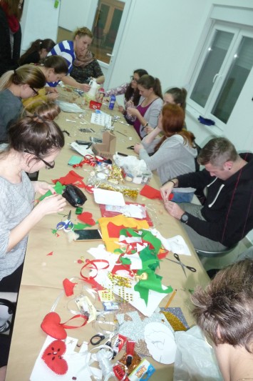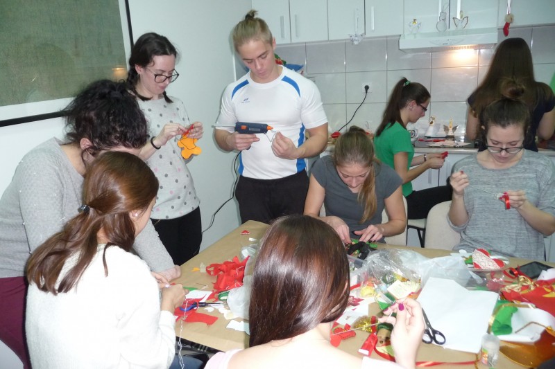 A közelgő ünnepek alkalmából az idén is több alkalommal megrendezett kézműves foglalkozások keretében készítettünk karácsonyi díszeket és ajándékokat a Kollégiumban. A díszeket elsősorban a Kollégium előcsarnokában és dísztermében felállított karácsonyfák díszítésére szántuk, de mindenki készíthetett magának is díszeket, ajándékokat.