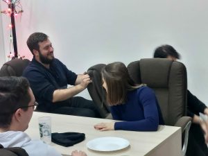 Az adventi koszorúk készítése után a hittan szakkör is összejött az Európa Kollégiumban, és egy fiktív karácsonyi ünnep jeleneteit dolgozták fel műhelymunka keretében, ft. Nagy Attila telepi plébános vezetésével.