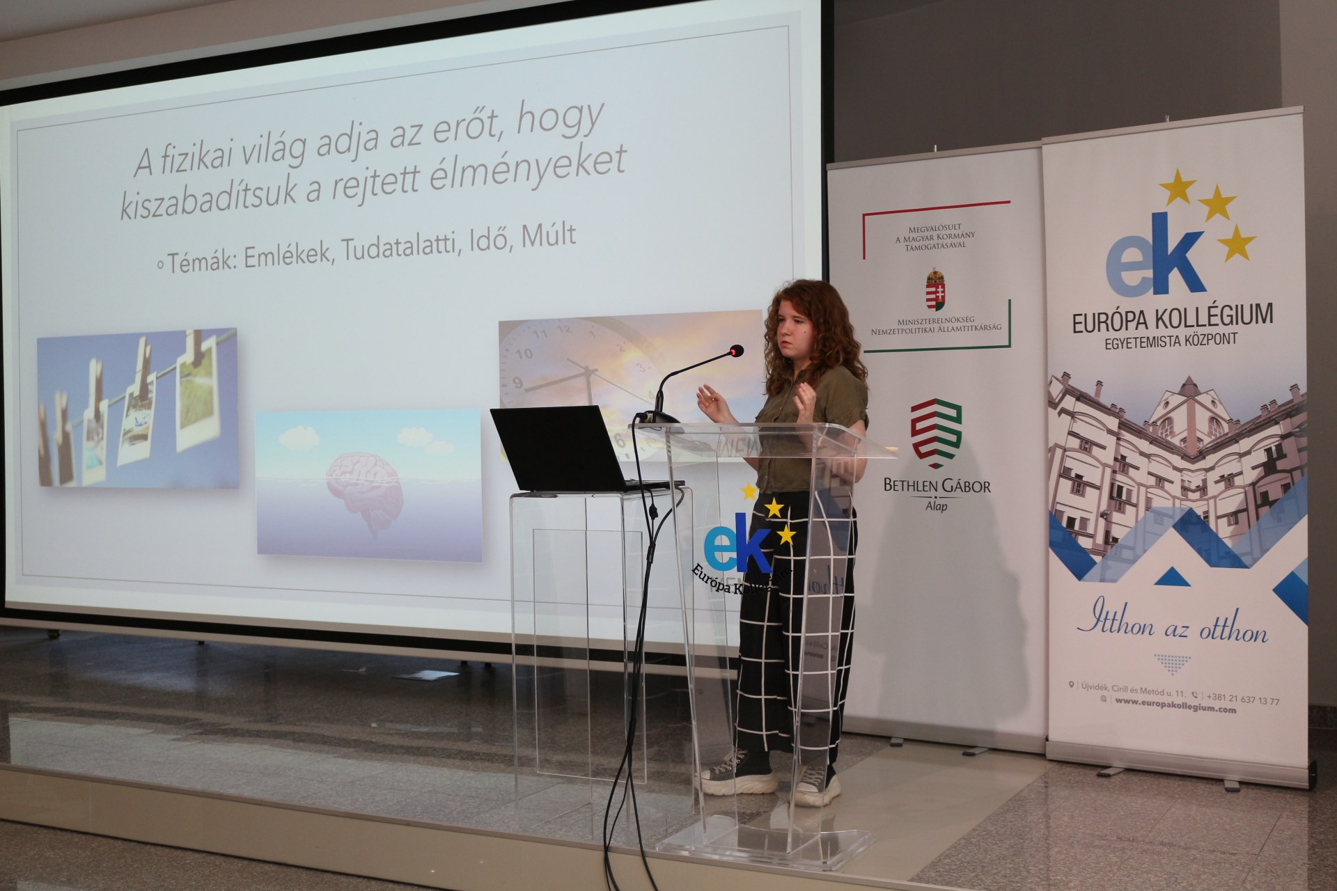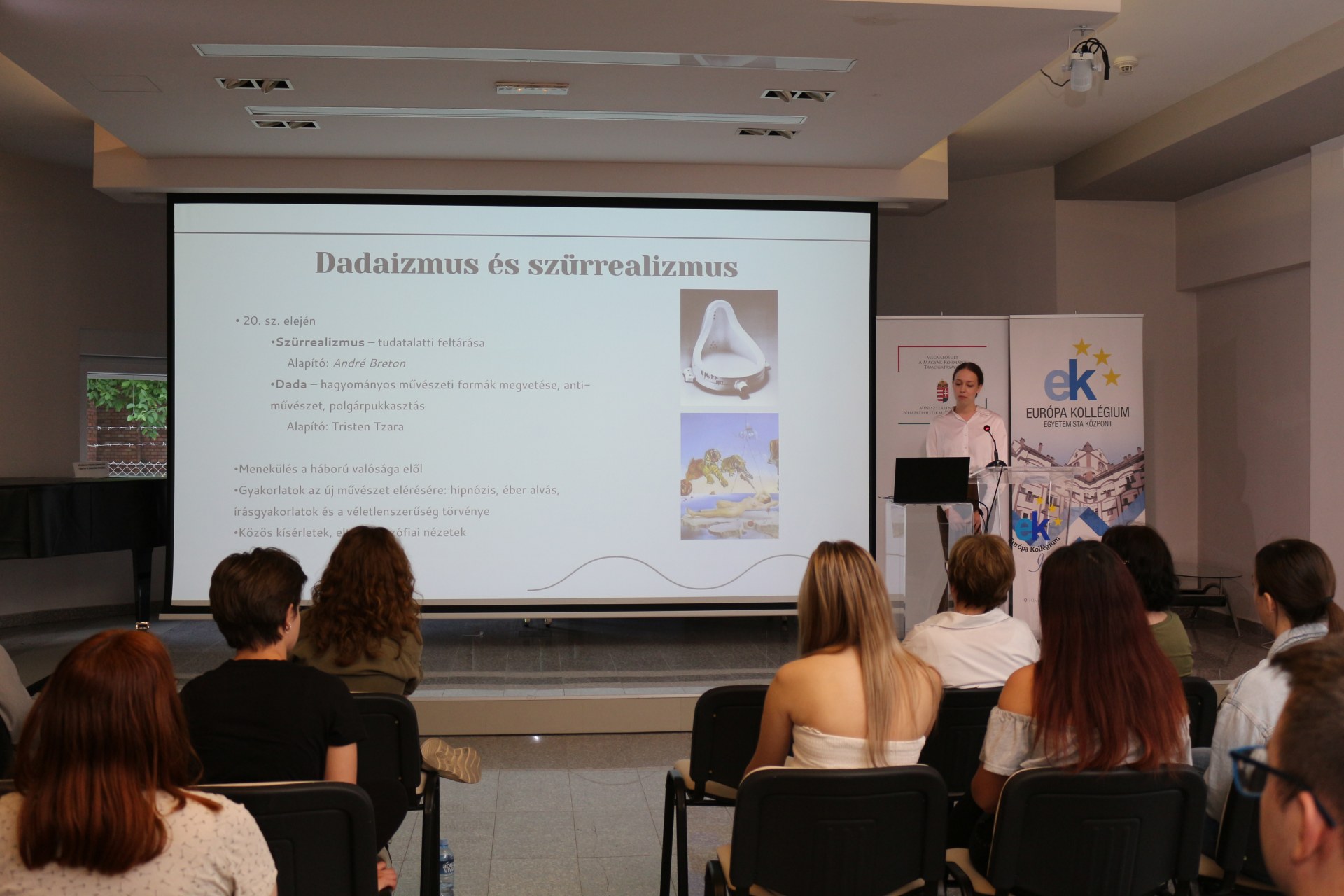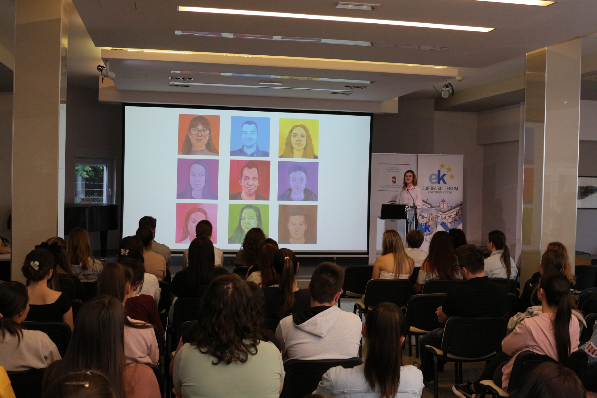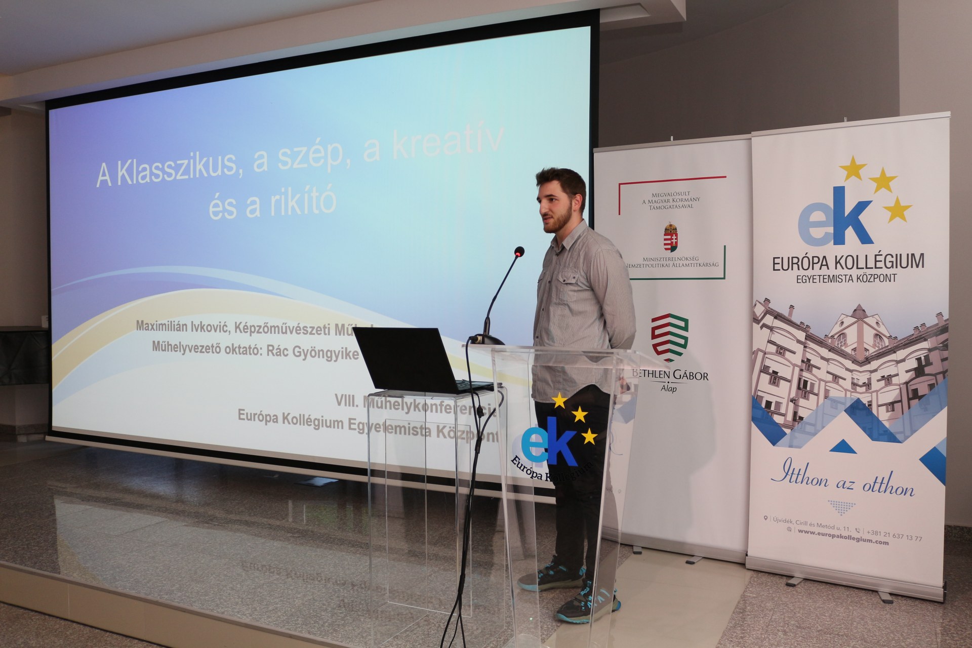 A kollégium dísztermében vette kezdetét, majd az első emeleti körgalériában folytatódott a Képzőművészeti Műhely zárókonferenciája. Rác Gyöngyike műhelyvezető oktató és Horvát Mária vezető nevelőtanár köszöntötte a négy műhelytagot, Ivković Maximiliánt, Lehócki Lúciát, Simon Rékát és Végső Vivient, akik prezentáció formájában mutatták be a munkáikat. Az idei tanévben is mindenki szabadon dönthetett arról, hogy mit alkot és milyen technikát alkalmaz. így a közönség betekintést nyerhetett az impresszionizmus, szürrealizmus, dadaizmus vagy a pop-art művészetek világába. Az előadáson, majd a kiállításon megfigyelőként részt vettek a még nem műhelyköteles elsőéves kollégisták is.