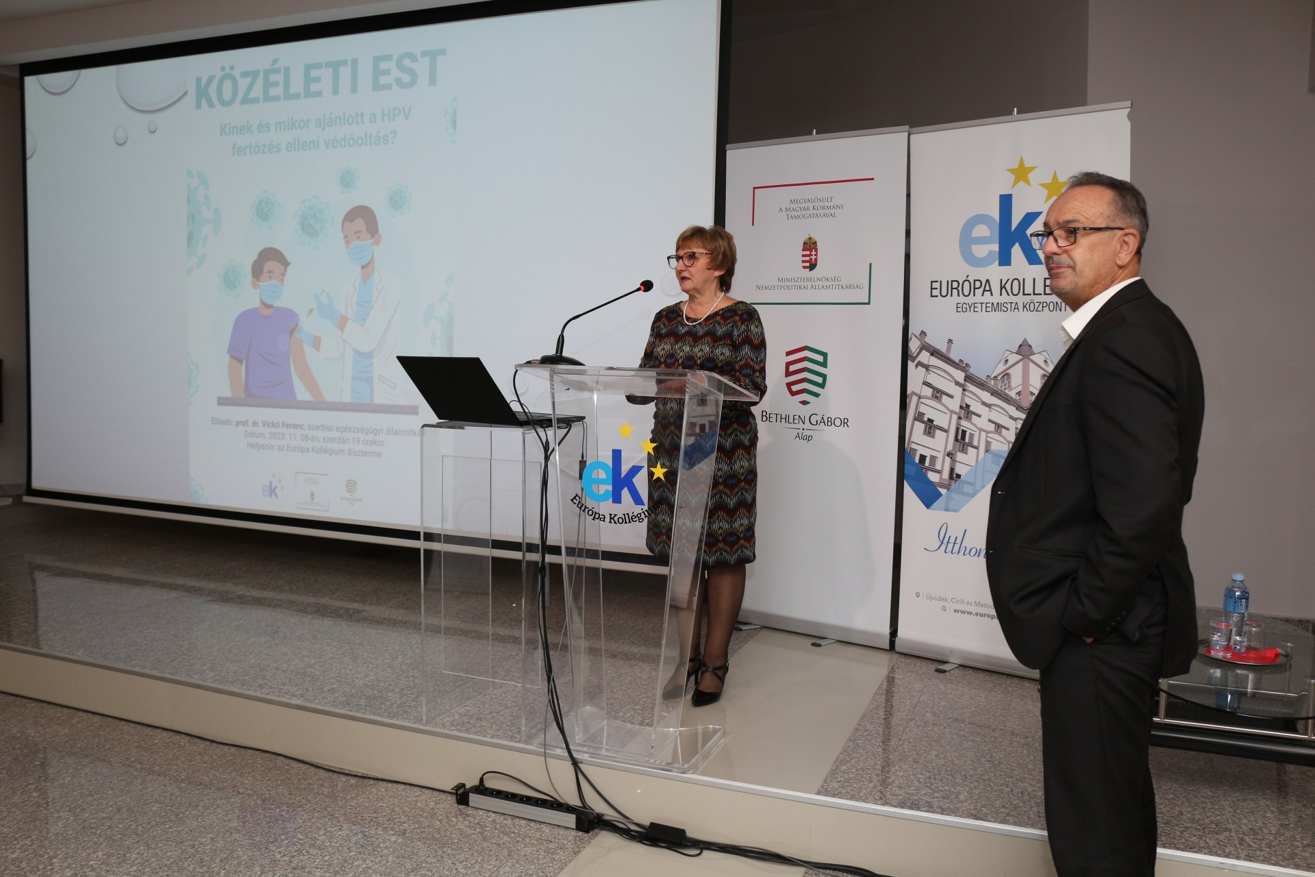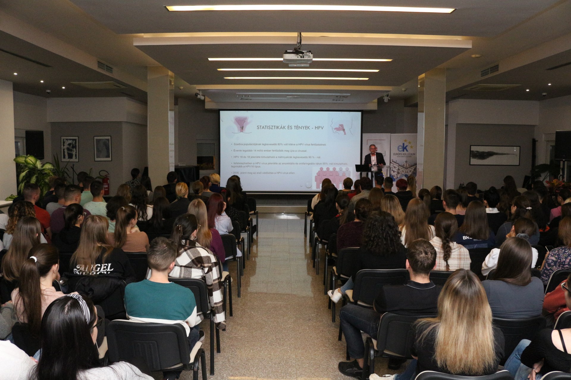A közéleti est második részében a HPV elleni oltásról tudhatott meg fontos információkat a hallgatóság. Az államtitkár úr a vakcina működése mellett az annak beadására vonatkozó jogszabályokat is elmondta a kollégistáknak. Arra bíztatta a hallgatóságot, hogy aki még teheti, vegye fel az oltást, és mindenképpen hívja fel az ismerősei, családtagjai figyelmét is a vakcina felvételének a fontosságára, amely kilenctől tizenkilenc éves korig ingyenesen elérhető minden szerbiai állampolgár számára. Kiemelte azt is, hogy ugyan a HPV legtöbb esetben méhnyakrákot okoz, nagyon fontos, hogy a fiúk is felvegyék az oltást.