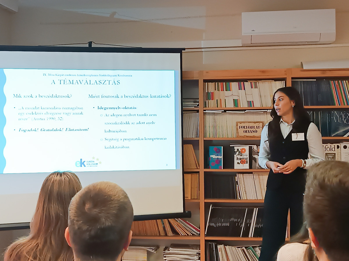 Kollégistáink a konferencia szombati és vasárnapi programjában is szerepeltek, számos tapasztalatot szerezve a szekcióvezetők és az anyaországi szakkollégista társaik kérdései által. Az intézmények közötti többéves, határokon átívelő együttműködésének remek példája, hogy kollégistáink idén is meghívást kaptak a Móra Ferenc Szakkollégium rendezvényére, számos műhelyünk munkájából merítve adták elő kutatási eredményeiket, ezzel is erősítve az Európa Kollégium nemzetközi kapcsolati hálóját.