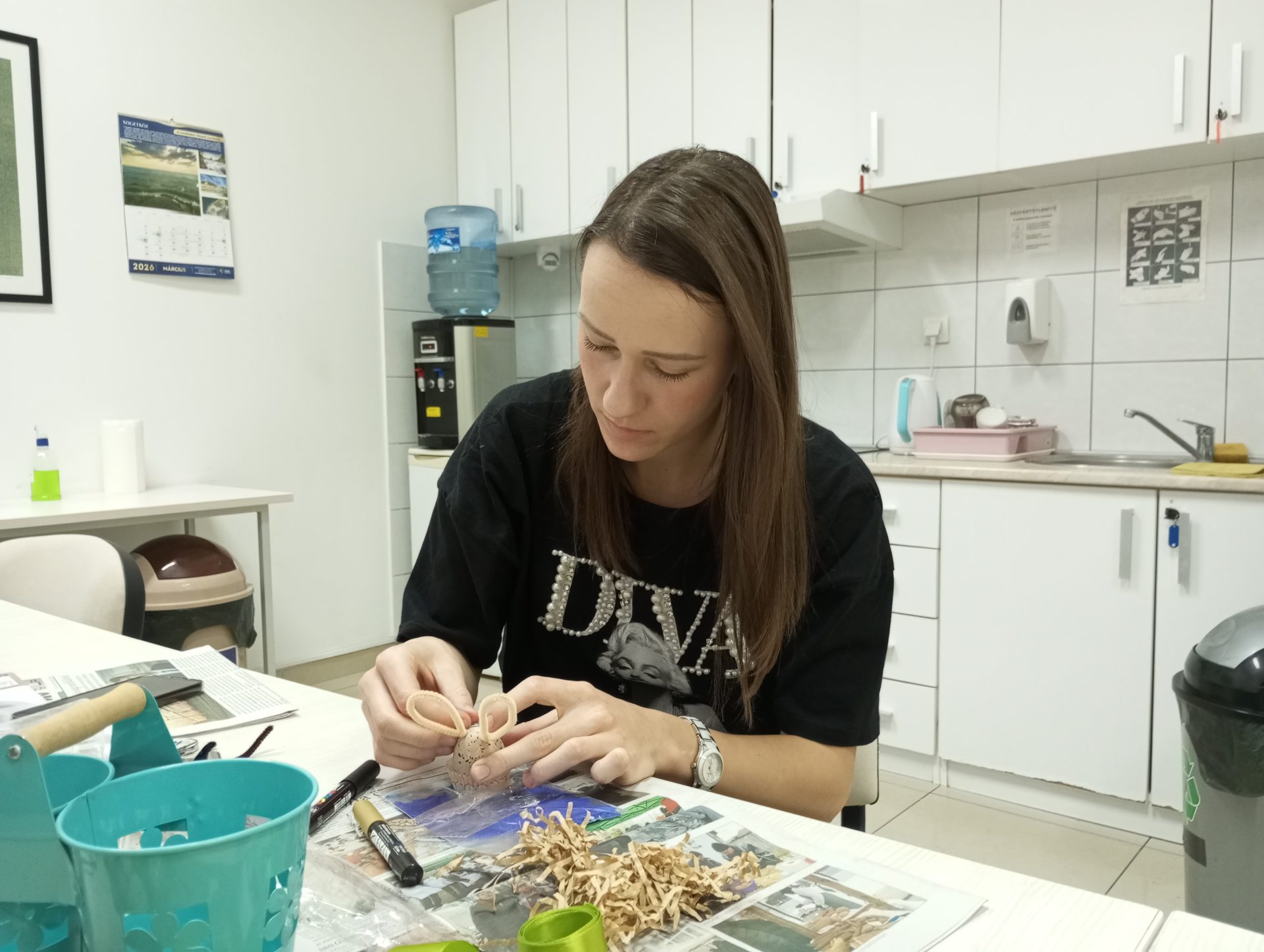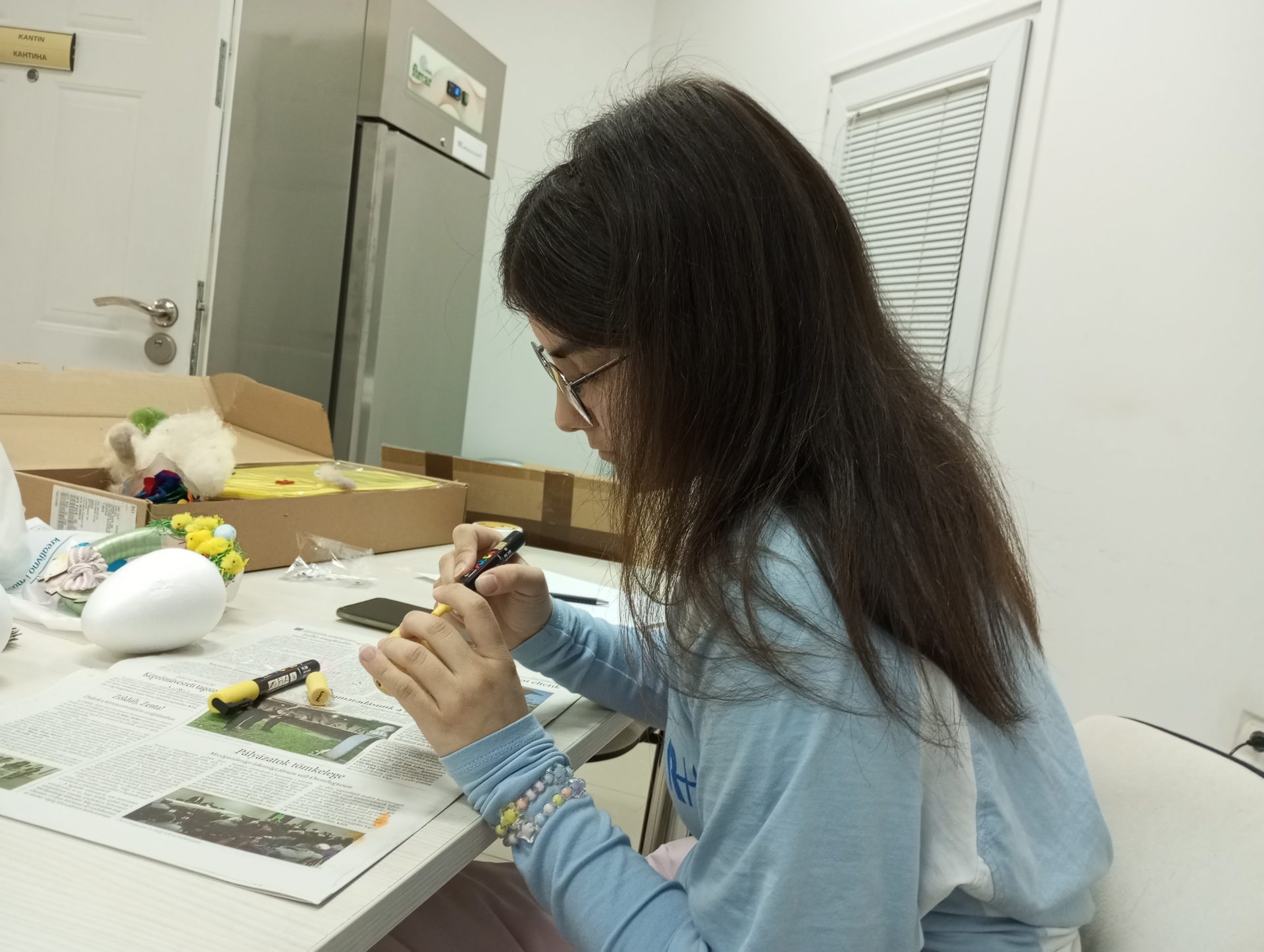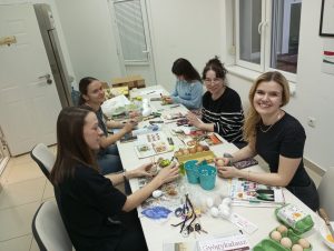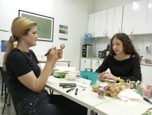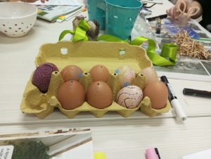 Végső Vivienn kollégistánk vezetésével megtartottuk a hagyományos húsvéti kézműves szakkörünket. Az érdeklődők tojásokat festettek, ezúttal akrillfilceket használtak. A szebbnél szebb munkákkal az előtérben lévő barkát díszítették.