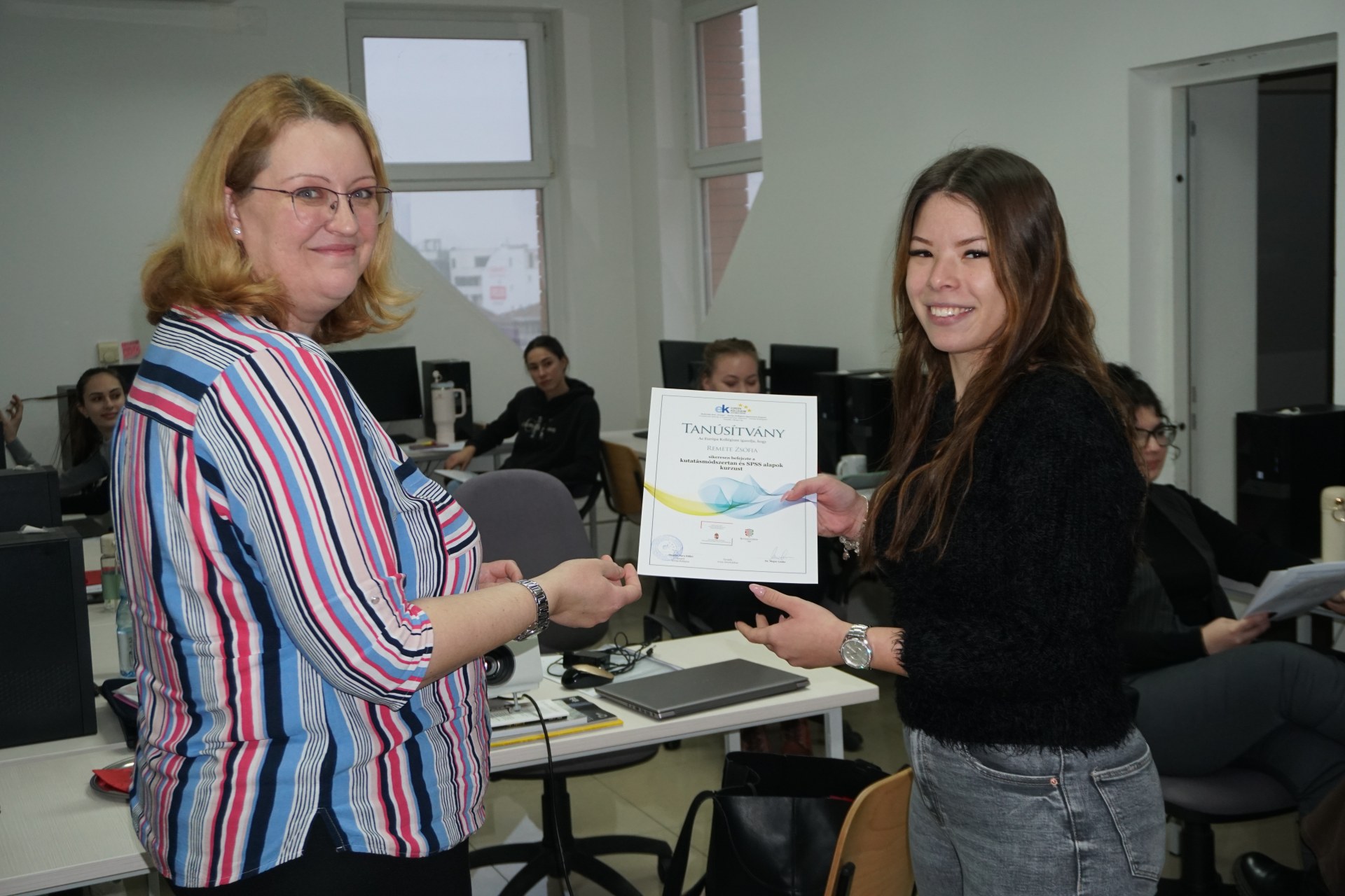 A tanfolyam végén Jaksa Nikolett, Remete Zsófia, Gubi Réka, Horváth Réka, Guba Loretta, Bezeg Réka, Virág Teodóra, Csordás Jelena, Dabić Viktorija, Király Petra, Rekecki Vivien és Gonclik Erika kollégisták vettek át tanúsítványt a kurzus sikeres befejezéséről. A képzést dr. Major Lenke vezette.