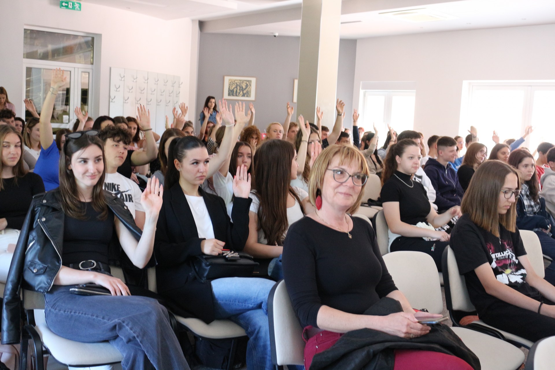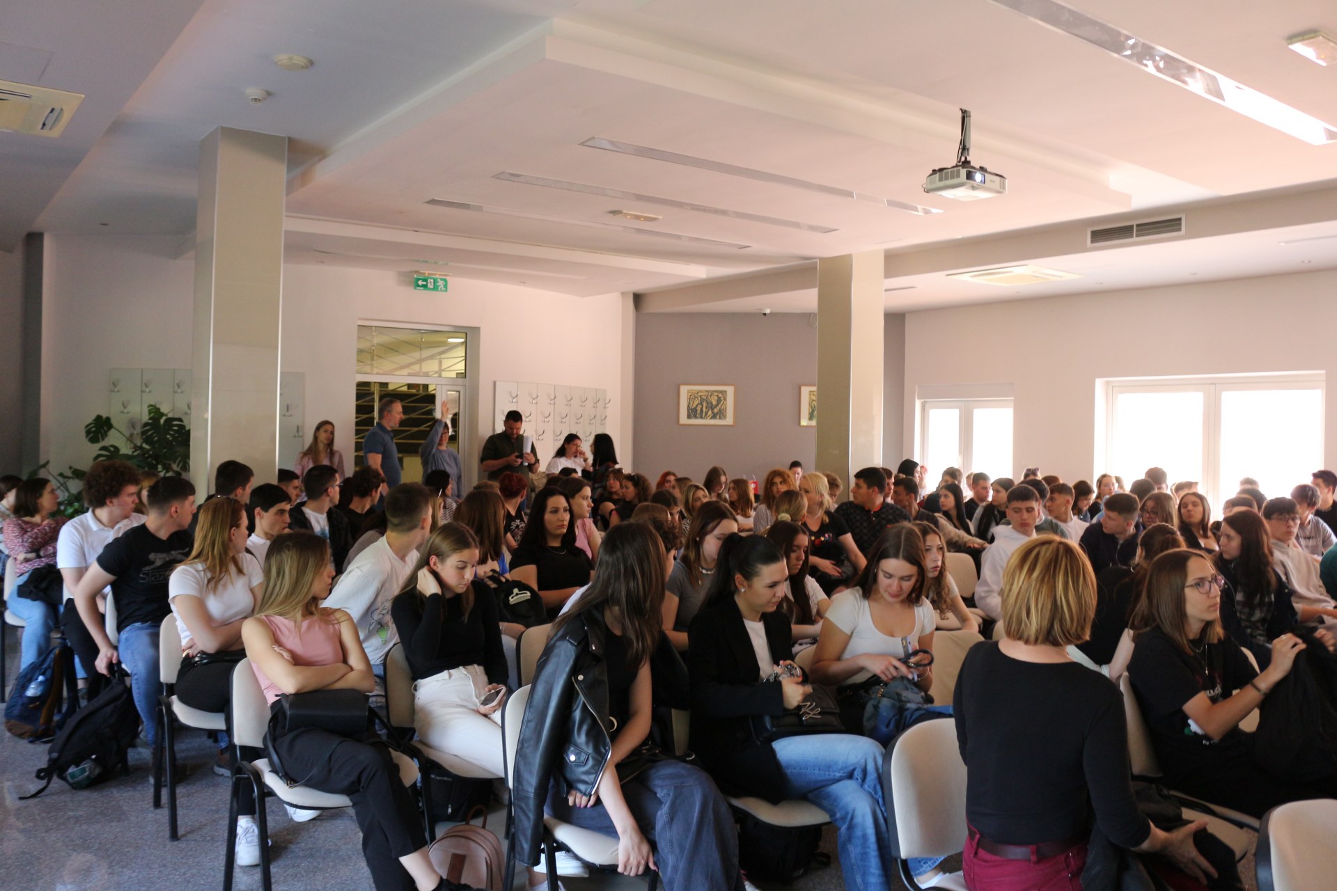 2024. május 15-én több száz vajdasági magyar középiskolás diákot fogadtunk vendégül, ugyanis a Magyar Nemzeti Tanács idén is megszervezte azt a tanulmányi utat, amely keretében a harmadéves középiskolás diákok egynapos kirándulás során megtekintették az újvidéki egyetemeket és az Európa Kollégiumot. Intézményünkben igazgatónő és a vezető nevelőtanár fogadta a diákokat, akiknek a kollégium adta lehetőségekről, szakkollégiumi programról és a kollégiumi életről szóltak. A diákok nagy érdeklődéssel fogadták a kollégium bemutatkozását, majd a nevelőtanárokkal együtt körüljárták a kollégium épületet, betekintettek a szobákba, teakonyhákba és különböző közösségi termekbe is.