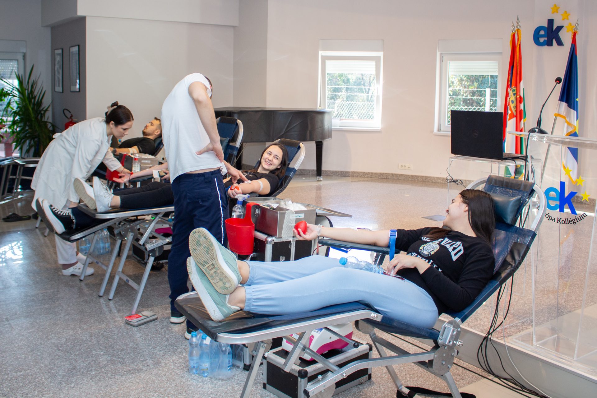 A Vajdasági Vérátömlesztő Intézet, a Vöröskereszt és az Európa Kollégium együttműködésének köszönhetően 2025. december 9-én ismét önkéntes véradásra nyílt lehetőség a kollégiumban. Intézményünk dísztermében immár 18. alkalommal szerveztük meg ezt a nemes kezdeményezést.