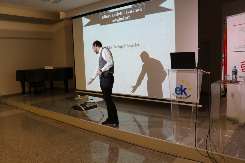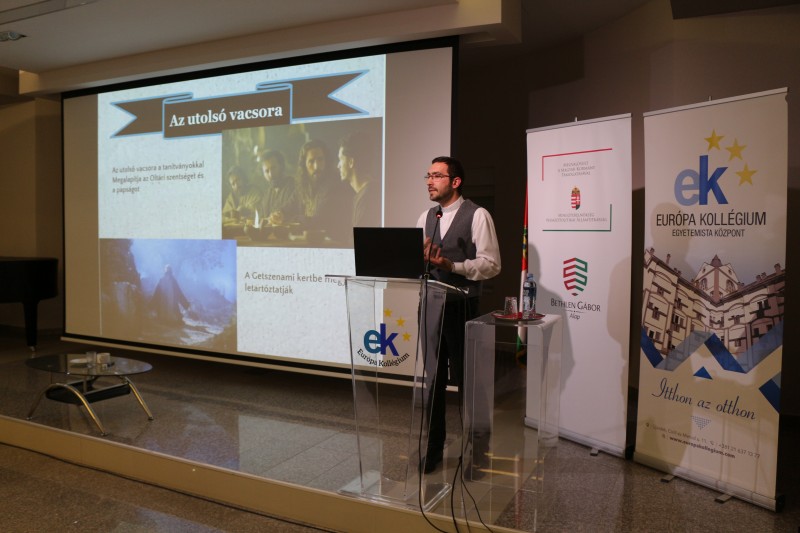 Ft. Hajdú László csonoplyai plébános Jézus utolsó napjai címmel tartott előadást a húsvéti ünnepekre készülő kollégistáknak. Az atya rendszeres vendég a kollégiumban, és mint mondta, mindig szívesen jön a fiatalok közé. Az előadását közös imával kezdte, majd kronológiai sorrendben ismertette a jelenlevőkkel azt, hogy mi vezetett Jézus elítéléséhez és keresztre feszítéséhez. A hallgatóság a vallási vonatkozások mellett betekintést nyert a korszak mindennapjaiba is. Ft. Hajdú László végül megválaszolta a fő kérdést is, hogy miért kellett Jézusnak meghalnia: