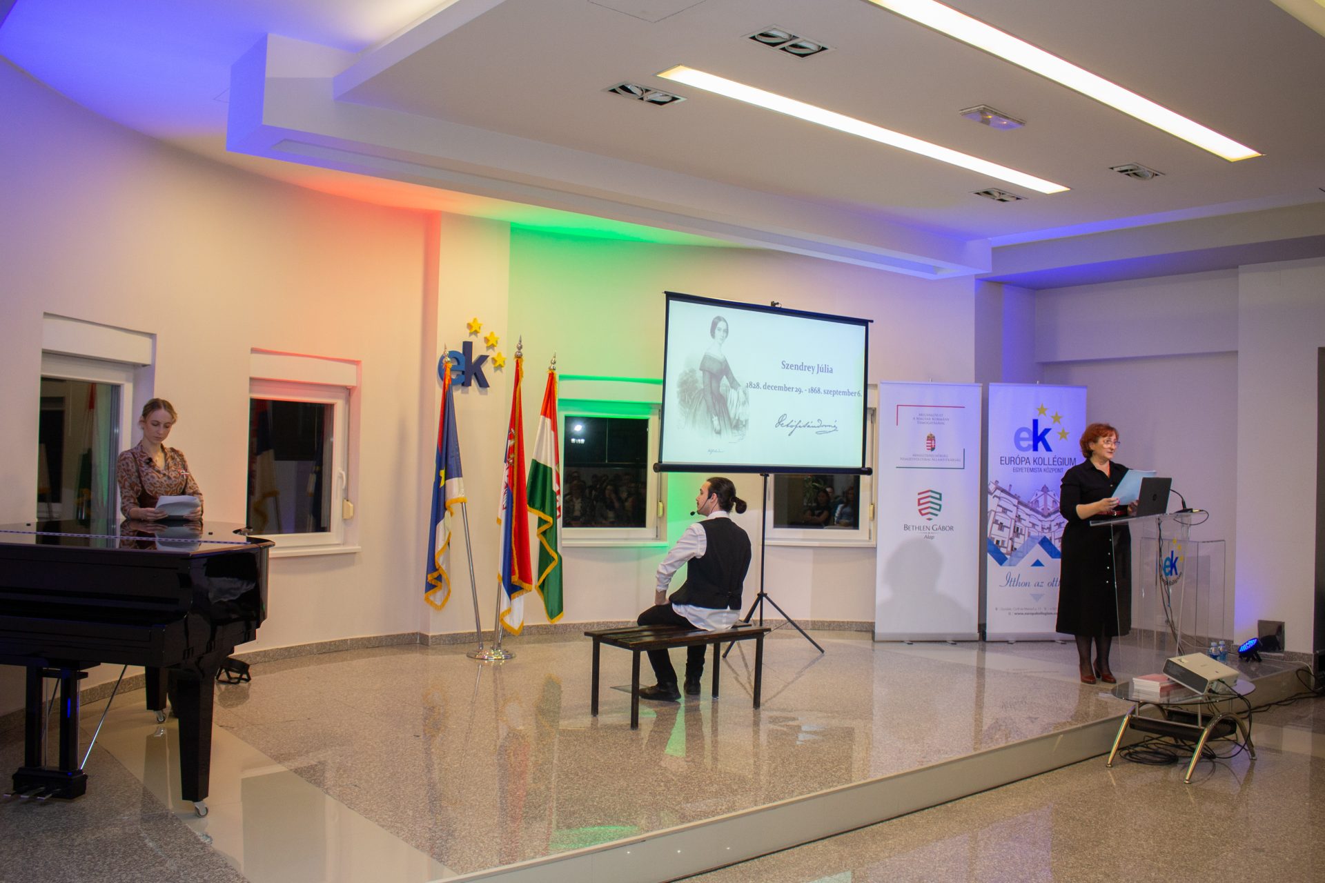 Az emlékező közönséget a kollégium igazgatónője, Snejder-Sára Ildikó köszöntötte, aki szólt a „márciusi ifjak” hitéről, hazaszeretetéről, elszántságáról. Ezek a fiatal magyar értelmiségiek voltak azok, akik ma is tükröt tartanak elénk, elgondolkodtatnak bennünket arról, hogyan élünk ma a ránk bízott lehetőségekkel, hogyan maradunk meg közösségként egy bizonytalan világban és hogyan tudunk hűek maradni egyszerre önmagunkhoz és nemzetünkhöz.
