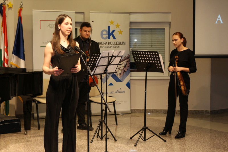 A Fimzenei est végén Snejder-Sára Ildikó, az Európa Kollégium igazgatónője megköszönte mgr. Borbély Zoltán műhelyvezető oktatónak az egész éves áldozatos munkáját, amelyet ezzel a csodálatos hangversennyel koronázott meg.