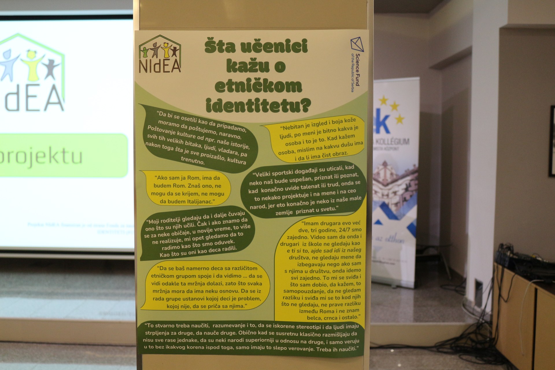 A Nidea projektum célja a serdülőkorban lévő fiatalok etnikai identitását vizsgálta, különös tekintettel a többségi és kisebbségi csoportok közötti eltérésekre. Az est elején dr. Erdős Kavecsán Györgyi üdvözölte a hallgatóságot, és rávilágított a téma fontosságára. Ezután egy rövidfilmben ismerkedhetett meg a hallgatóság a projektum folyamatával, majd dr. Nataša Simić vette át a szót és ismertette az eredményeket.
