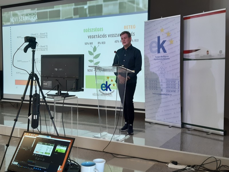 Április 7-én Fodor Máté kollégista, A növényzet fenológiai fázisának vizsgálata műholdas távérzékelési módszerekkel Magyarkanizsa község területén című dolgozatát adta elő a Geoinformatika és távérzékelés tagozat ülésén. Érdeklődéssel, kíváncsian követték a jelenlévő egyetemisták és nevelőtanárok. Témavezető tanára Dr. Mészáros Minucsér az Európa Kollégium műhelyvezető oktatója. A szereplés után Máté elmondta: