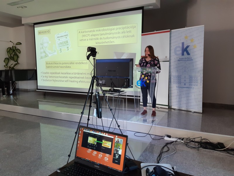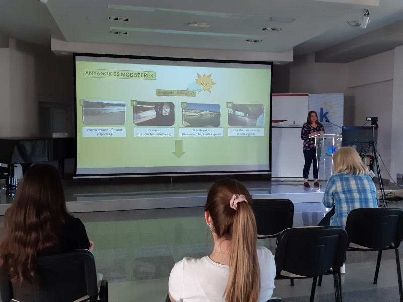 Ugyanezen a napon Holpert Csilla kollégista is előadott a 35. OTDK Biológia Szekciójában. Holpert Csilla a Mikrobiológia 2. tagozat ülésén Biokalcifikációs potenciállal rendelkező sporogén, alkalofil baktériumok izolációja különböző forrásokból és jellemzői című szakdolgozatát mutatta be.