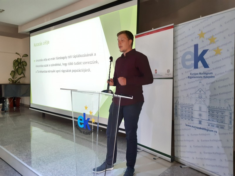 Május 4-én az Ökológia 1. tagozat ülésén Rekecki Tibor kollégista A gyöngybagoly (Tyto alba) táplálkozása Szilágyin című szakdolgozatát adta elő. Tibor a 35. OTDK Biológia Szekciójában még egy munkájával szerepelt. Az Ökológia 2. tagozat ülésén Az erdei fülesbagoly téli táplálkozása Törökkanizsán című munkáját hallhattuk.