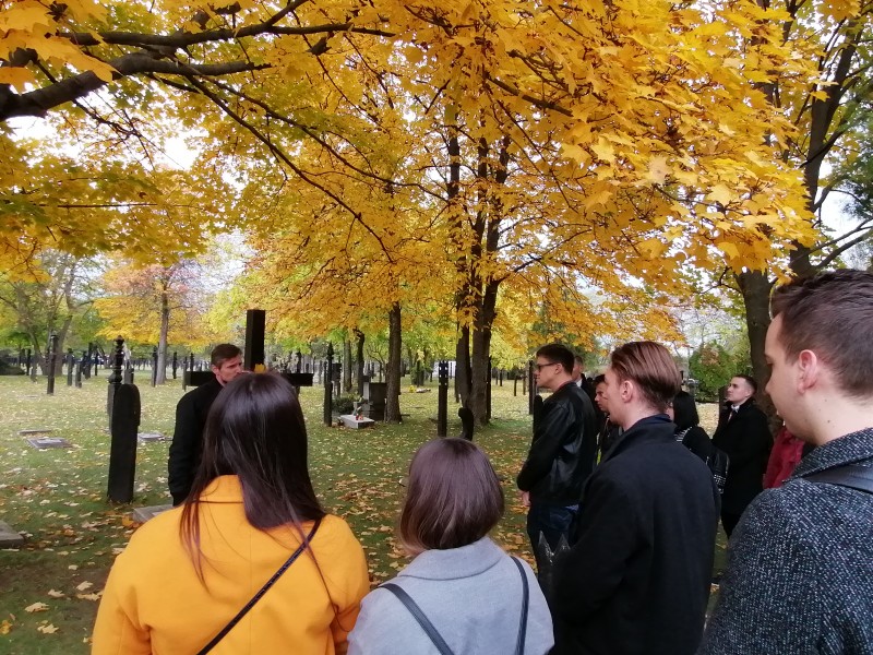 Október 22-én, első utunk a budapesti Kozma utcai temető 301-es parcellájára vezetett, ahol az 56-os forradalom elesettjeit temették el, itt történészek meséltek az 56-os forradalom eseményeiről.