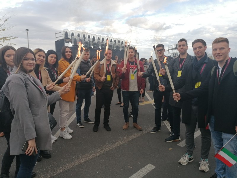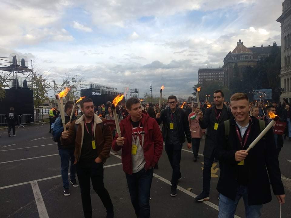 Délután a Műegyetemtől a Bem térig tartó fáklyás felvonuláson, majd az ezt követő ünnepi megemlékezésen vettünk részt. Az est koncerttel zárult.