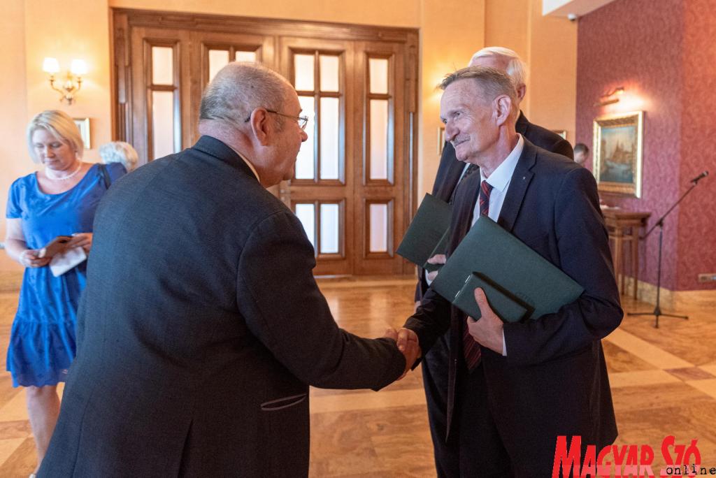 – Meglepett, és nagyon jólesett a kitüntetés. El kell mondanom azonban, hogy annak idején még jobban esett az, hogy a vajdasági magyar közösség elfogadta azt a javaslatomat, hogy Újvidéken megépüljön az Európa Kollégium. Tíz év telt el az ötlettől a megvalósításig, de sikerült otthont adni a vajdasági magyar leendő értelmiségnek. Ami pedig ennél is fontosabb talán, hogy a kollégium Snajder Sára Ildikó igazgató vezetésével a világ egyik legszebb és legtartalmasabb kollégiuma lett. Dagad a szívem: nem volt értelmetlen a munkánk, pillanatnyilag is 450 fiatal hallgatónk tölti be élettel az épületet. Egy olyan alapkő tevődött le, amelyre tovább lehet építkezni – mondta a Magyar Arany Érdemkeresztet kiérdemlő temerini jogász.