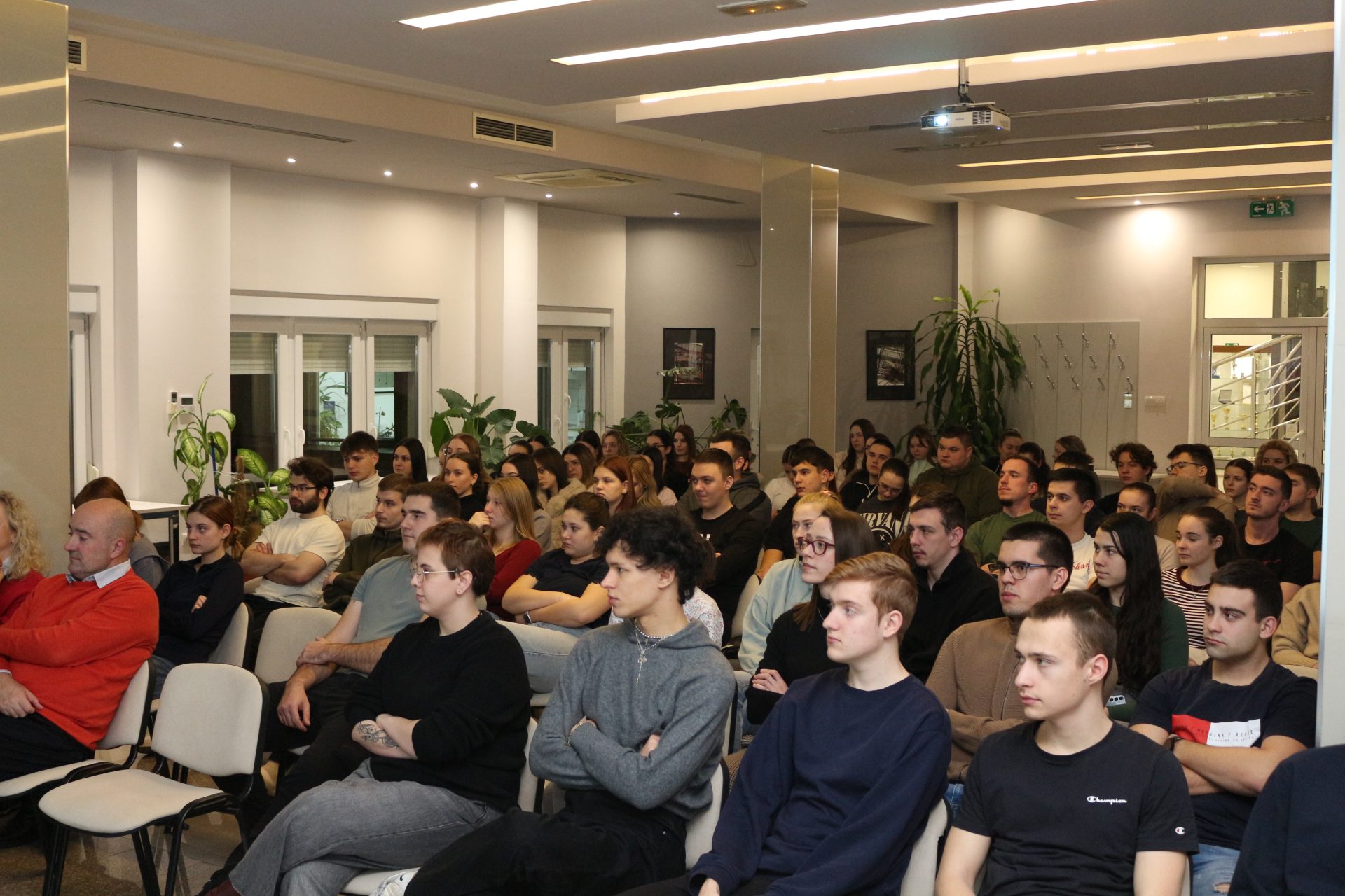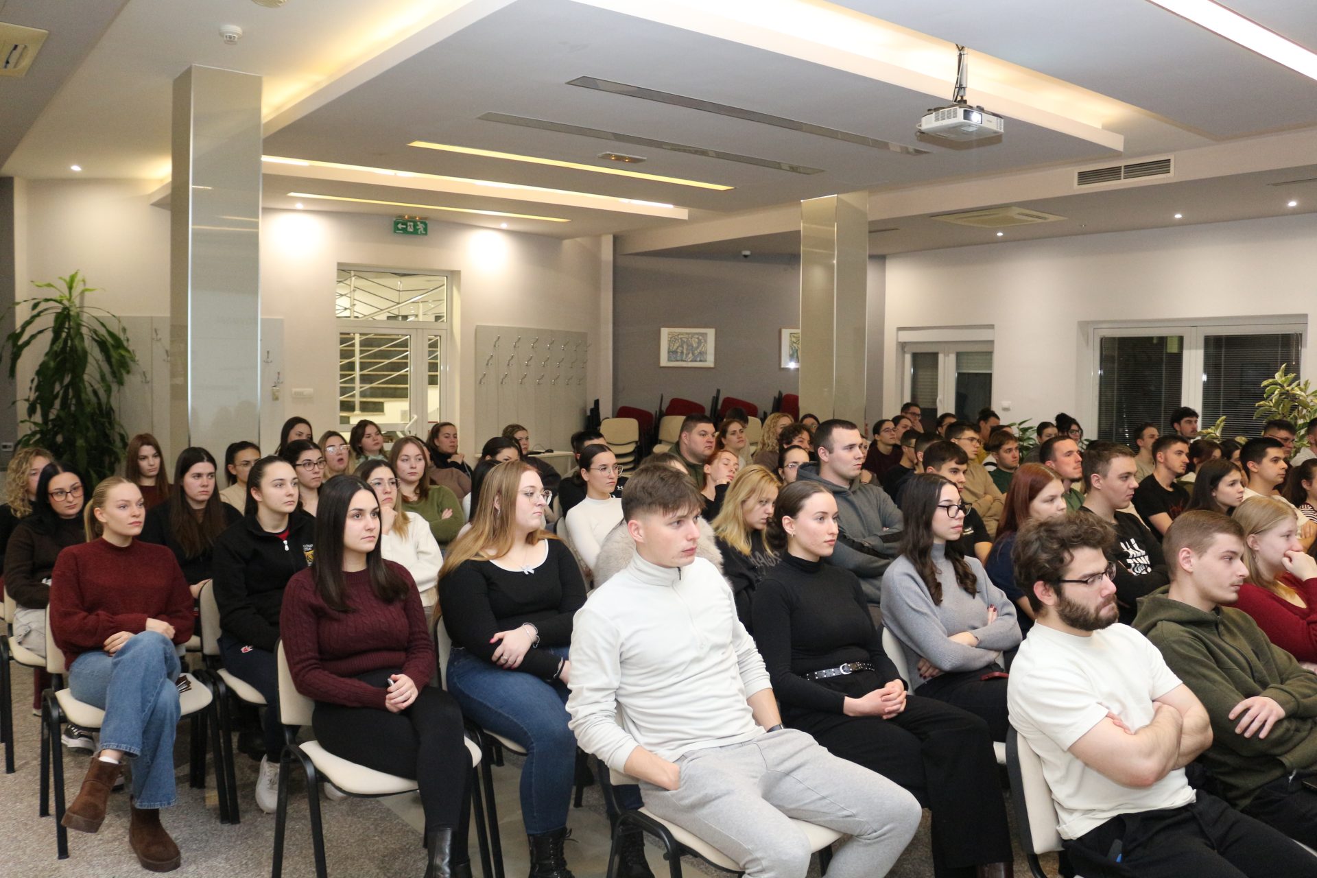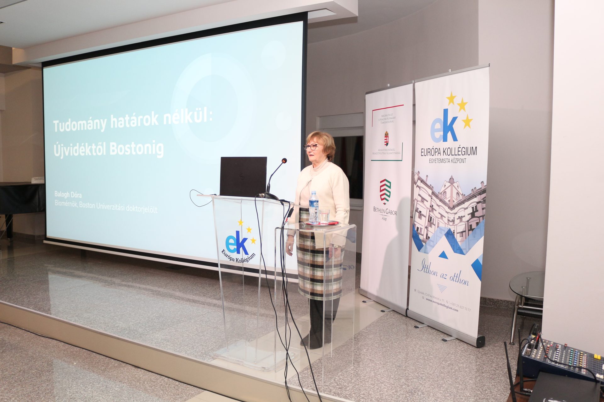 Balog Dóra biomérnök, a Boston Univerzitás doktorjelöltje Tudomány határok nélkül Újvidéktől Bostonig címmel tartott előadást a kollégium dísztermében 2026. január 14-én.